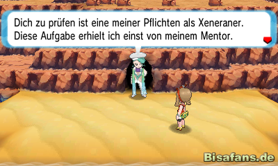 Sie merkt, dass Rayquaza nicht von ihr kontrolliert werden kann. Euer Meteorit beginnt schließlich zu leuchten und veranlasst Rayquaza dazu den Meteoriten zu verschlingen. Rayquaza will nun eure Kraft testen indem ihr gegen es kämpfen müsst. Tretet also gegen es an und fang es. Solltet ihr Rayquaza besiegen erhaltet ihr stets wieder eine neue Chance es zu fangen, bis ihr es euer Eigen nennen könnt. Amalia bringt Rayquaza anschließend die Attacke Zenitstürmer bei und fordert euch zu einem weiteren Kampf heraus. Besiegt sie in diesem Kampf – solltet ihr jedoch gegen sie verlieren geht die Story trotzdem weiter.