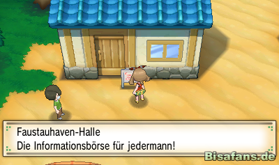 Mit dem Erledigen der Aufgabe von Mr. Trumm habt ihr alles gemacht, wofür ihr zu dieser Insel gekommen seid – ihr könnt euch nun auf in die nächste Stadt machen. Doch bevor dies geschieht solltet ihr noch einmal kurz Faustauhaven erkunden. Lauft ganz bis an den unteren Rand der Stadt und haltet euch dann rechts. Lauft dann hinter dem blauen Haus entlang bis zum Bildschirmrand. Ihr gelangt so auf einen kleinen Teil von Route 107. Dort findet ihr einen Superschutz, zu dem man natürlich nicht Nein sagen kann. Geht dann zurück in die Stadt und sprecht den Angler rechts neben der Arena an. Dieser schenkt euch eine Angel, mit der ihr künftig an Wasserstellen auch Pokémon im und unter Wasser fangen könnt.