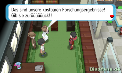 Im Klimainstitut angekommen werdet ihr von der Empfangsdame darauf hingewiesen, dass es im ersten Stock Ärger gibt. Kämpft euch also den Weg frei bis nach oben und befreit die drei Personen im oberen Geschoss. Als Belohnung dafür bekommt ihr das Pokémon Formeo, welches seine Gestalt wandeln kann. Geht anschließend nach unten und sprecht dort den Professor an. Dieser schenkt euch zusätzlich zu dem Formeo noch einen Beulenhelm. Von der Empfangsdame gibt es obendrauf noch einen Eisbrocken - sie schenkt euch danach übrigens täglich einen der Wetter-Brocken. Verlasst das Haus wieder, nachdem ihr euch alle Geschenke abgeholt habt.