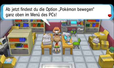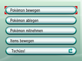 Die praktischste Funktion des Lagerrungssystem ist der Punkt Pokémon Bewegen, welcher euch erlaubt euer Team und die Boxen komplett umzusortieren und zu organisieren. Dieser Menüpunkt stand bisher immer an dritter Stelle des Auswahlmenüs, kann nun jedoch von Lanette, derjenigen, die das Lagerungssystem weiterentwickelt hat, an erste Stelle verschoben werden.
