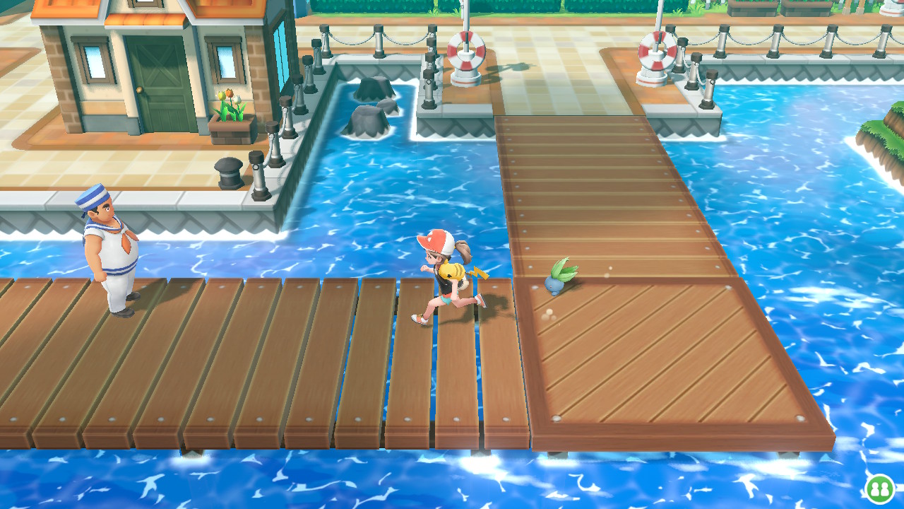 In Oriana City gibt es einiges zu sehen. Gleich links ist das Pokémon-Center, wovor ihr ein Schiggy geschenkt bekommen könnt, wenn ihr genug Pokémon gefangen habt. Weiter unten in der Abzweigung gibt es einen Pokémon-Fanclub, in dem ihr ein Pikachu-Kleidungsset vom Fanclubleiter erhaltet. Geht nach rechts oben zur freien Fläche, um am orangenen Kasten an der Ecke einen Hyperheiler zu finden. Lauft nun zum Hafen runter, um bei der MS. Anne an Bord zu gehen. Der Matrose davor schenkt euch, weil ihr deren 100. Gast seid, ein Matrosen-Outfit für euer Partner-Pokémon. An Bord des Schiffes kommt es zum Gespräch zwischen Blau, eurem Rivalen und euch. Blau schenkt euch ein Yantara-Sablé.