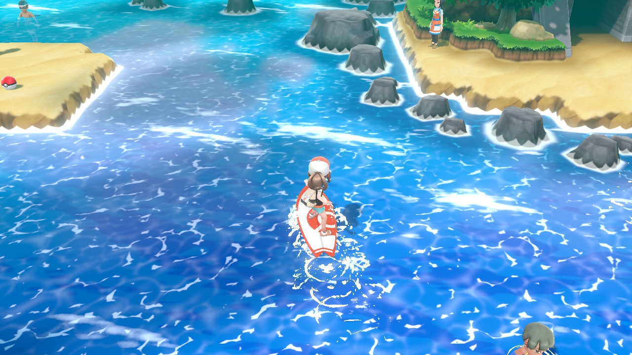 Bei diesem Teil der Route gibt es kleine Inseln, auf denen Trainer oder nützliche Items liegen können. surft nach links weiter und ihr seid auf der Zinnoberinsel.