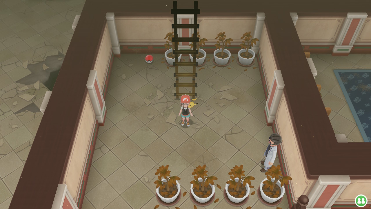 Die Pokémon-Villa bietet wie auch schon im Silph Co-Gebäude ein Rätsel an, um den richtigen Weg herauszufinden. Ihr müsst Staturen berühren, damit sich eine bestimmter Durchgang öffnet. In der Villa selbst gibt es einige Forscher und Diebe, die euch den Weg zum Schlüssel erschweren. Nehmt die große Treppe aus dem dritten Stockwerk, um in den Keller zu gelangen. Dort könnt ihr eine Treppe nach unten gehen, um dann links in einem Raum einen Geheimschlüssel zu geben. Interessant sei auch, dass einige Bücher auf den Tischen Informationen und interessante Fakten zu Kanto, dem ehemaligen Nutzen der Villa und besonderen Pokémon geben. Geht zurück aus der Pokémon-Villa und versucht, die Arena zu öffnen.