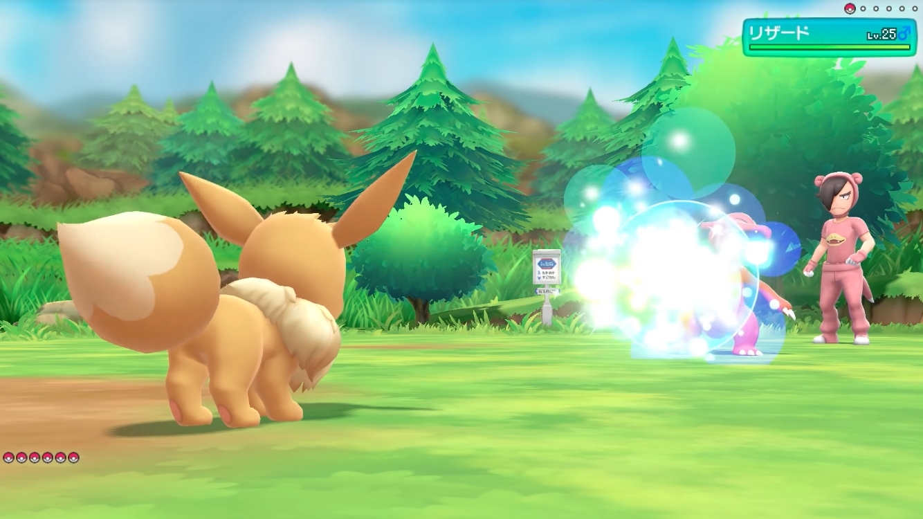 Evoli greift mit Wasserblasen an. Evolis KP werden um die Hälfte des vom Wasser angerichteten Schadens geheilt.