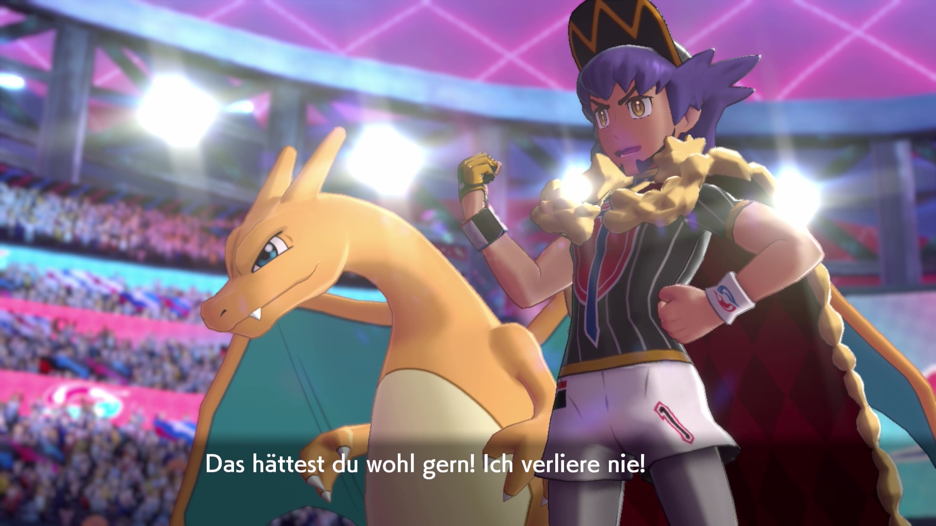 Gewinnt ihr trotz seines starken Teams gegen ihn, seid ihr der neue Pokémon-Champion von Galar und erhaltet eine große Jubelfeier zu Ehren eures Sieges.