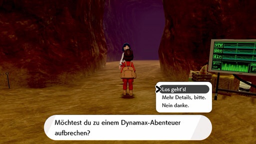 nach Abschluss der Expeditionen auf der Kronen-Schneelande in der Lobby der Dynamax-Abenteuer an, erzählt sie dem Spieler gegen 5