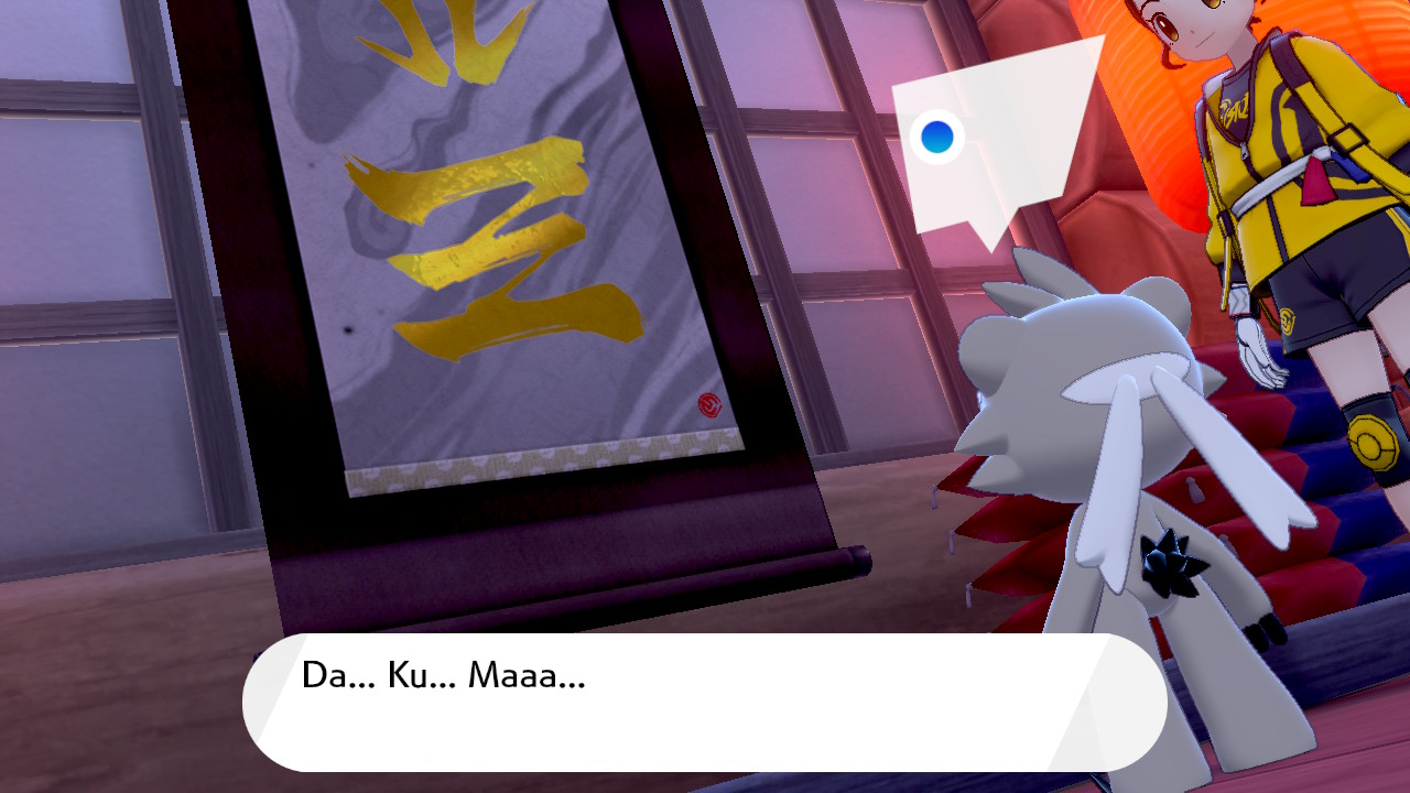 Mastrich bittet uns danach, in sein Zimmer zu kommen, wo Sophora bereits wartet. Er erzählt uns, da nur noch wir beide übrig seien, dass wir nun zur dritten Prüfung kommen: Einem Pokémon-Kampf, der auf dem Kampffeld hinter dem Dojo ausgetragen werde. Dort befindet sich eine Energiequelle für Dynamax-Energie, sodass wir bei dem Kampf auf die Dynamax-Funktion zurückgreifen können.