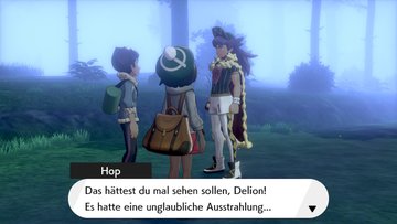 Eine Sequenz beginnt, die Menschen fangen an zu jubeln, da Delion erscheint. Delion führt eine kleine Pose vor und hält eine Rede, unter anderem, dass er die Trainer in Galar zu wahrer Stärke führen möchte. Er erkennt Hop und kommt zu uns, stellt sich nochmal persönlich vor und Hop schlägt wieder ein Wettrennen zu sich nach Hause vor. Als Hop voller Energie losrennt, erzählt Delion, dass er sich für Hop einen Rivalen wünscht, damit sein volles Potenzial entfaltet wird und rennt kurz danach ebenfalls los.
