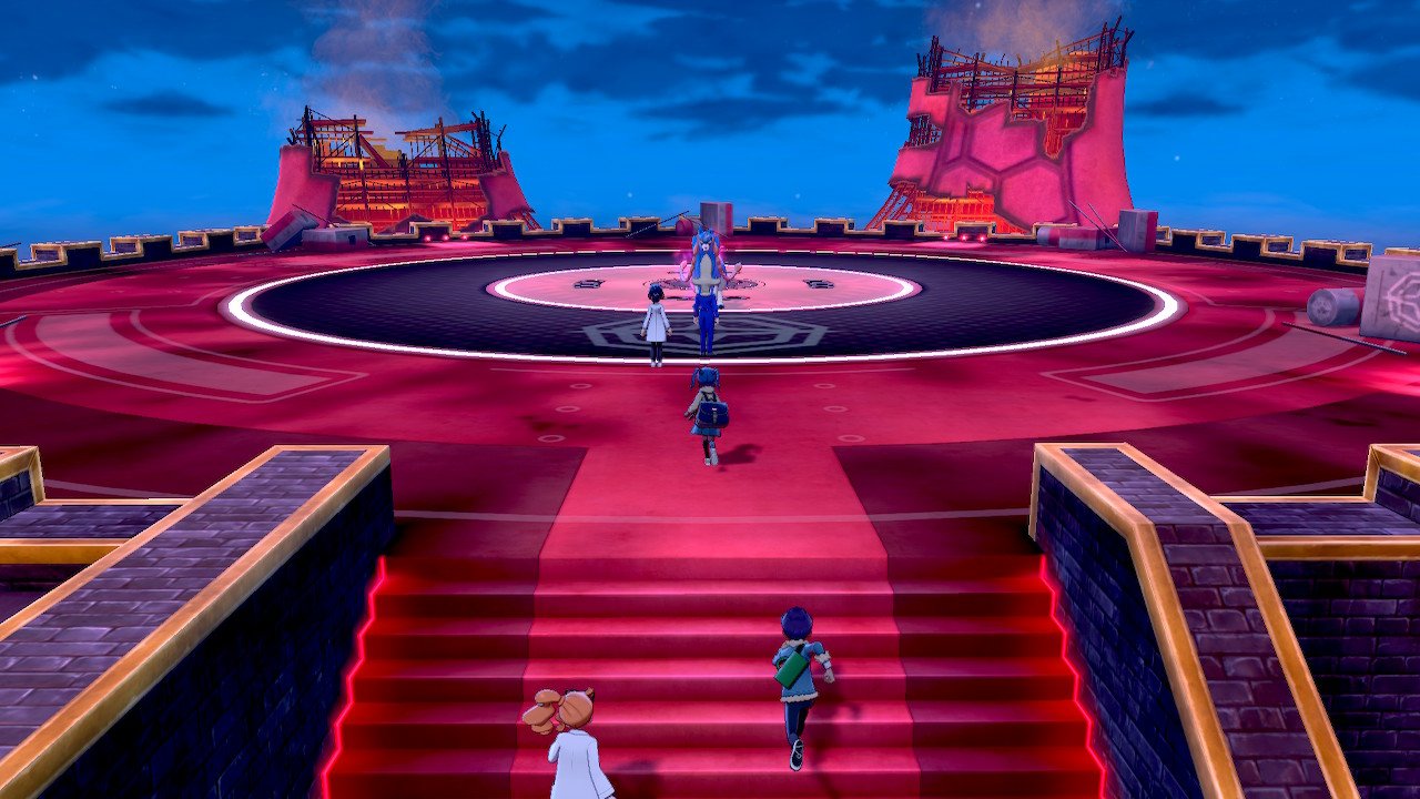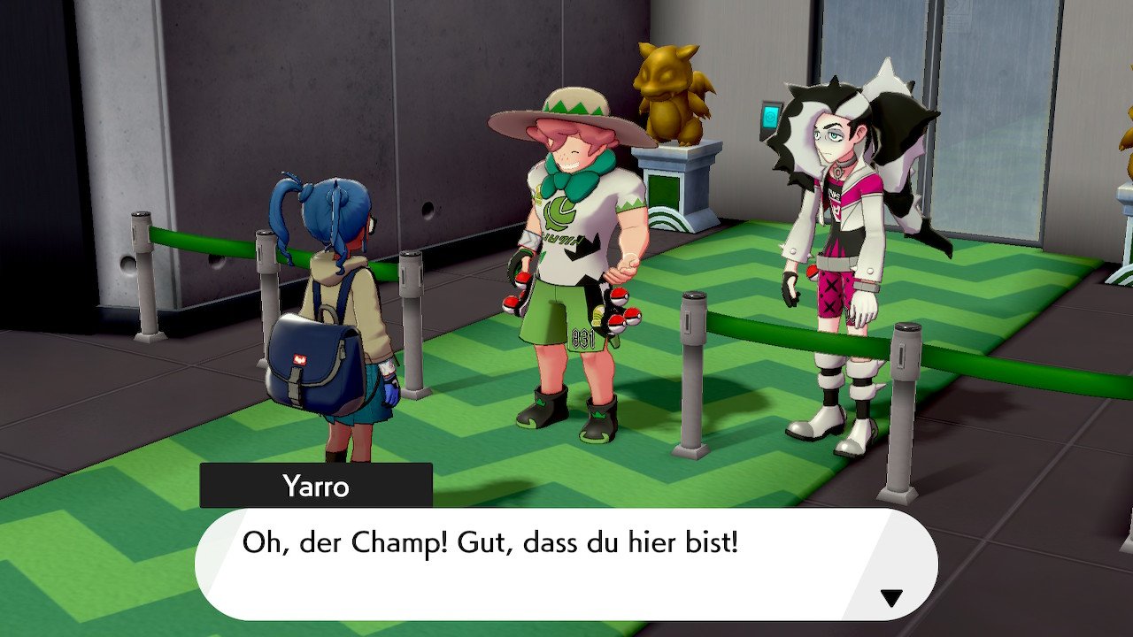 In der Arena treffen wir auf Nezz und Yarro, die einen Schaukampf hatten, als plötzlich ein Pokémon sich dynamaximierte. Sie evakuierten das Personal und die Zuschauer und wollen sich nun um das Dynamax-Pokémon kümmern. Ihr bietet eure Hilfe an, genau so wie Hop und Nezz, woraufhin ihr das Kampffeld betretet und ein Dynamax-Fruyal sieht. Gemeinsam bekämpfen wir das Fruyal und besiegen es. Yarro kümmert sich um das Pokémon und gibt uns als Dank seine seltene Ligakarte. Kurz darauf erscheinen Schwerthold und Schildrich und meinen, es sei ein Test gewesen und sie möchten jetzt neue und stärkere Pokémon dynamaximieren, um die wahre Natur von Zacian und Zamazenta zu zeigen. Verlasst die Arena und trefft auf Sania, die meint, in Keelton und Engine City schlägt der Detektor ebenfalls aus, woraufhin ihr euch zu den Stadion aufmacht, um zu helfen. Nezz und Hop schließen sich der Aufgabe an und unterstützen euch in der Rettungsmission.