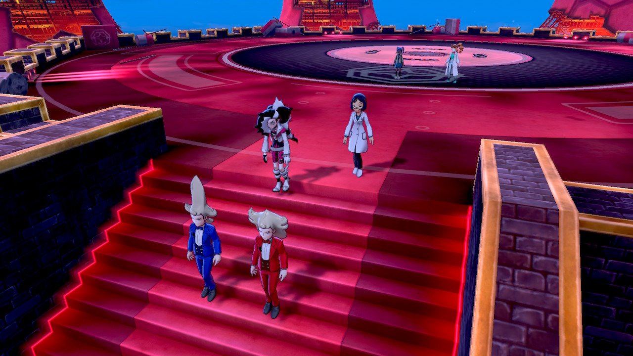 Im Pokémon-Labor angekommen sitzen Schwerthold und Schildrich herum und diskutieren mit Sania und Professor Magnolica. Hop ist von der Niederlage geprägt, wovon er sich aber nicht unterkriegen lassen soll, laut Nezz. Es kommt zum Doppelkampf mit Hop, in dem die beiden Adelsbrüder vor allem Stahl-Pokémon einsetzen. Nach dem Kampf kommt die Assistentin von Sania, die allen Anschein nach under cover für die beiden gearbeitet hat und die Wunschsterne klaut. Sie arbeitet zum Wohle der königlichen Blutlinie und verschwindet mit den beiden. Sania ist am Boden zerstört und möchte nicht angesprochen werden. Ihr verlasst das Labor, jedoch folgt euch Sania und meint, sie will das Problem angehen. Gemeinsam grübelt ihr über die Beweggründe der beiden, bevor das Signal des Detektors in vier Stadien ausschlägt. Nezz sorgt sich um Mary, der neuen Arenaleiterin von Spikeford, allerdings grundlos, da dort keine Energiequelle für Dynamaximierung vorliegt. Ihr macht euch auf den Weg, um die Stadien vor den Dynamax-Pokémon zu retten.