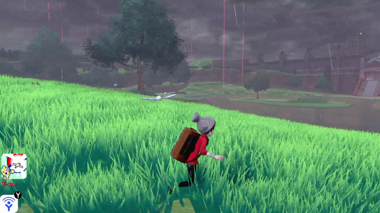 Wie alle wilden Pokémon, die in Schwert und Schild an der Oberfläche sichtbar sind, verfolgen euch, je nach Art, sobald sie euch sehen oder bemerken, einige Pokémon, andere laufen eher vor euch weg. Mit der Heranschleichen- und der Pfiff-Funktion, die ihr über den rechten Kontrollstick eurer Konsole