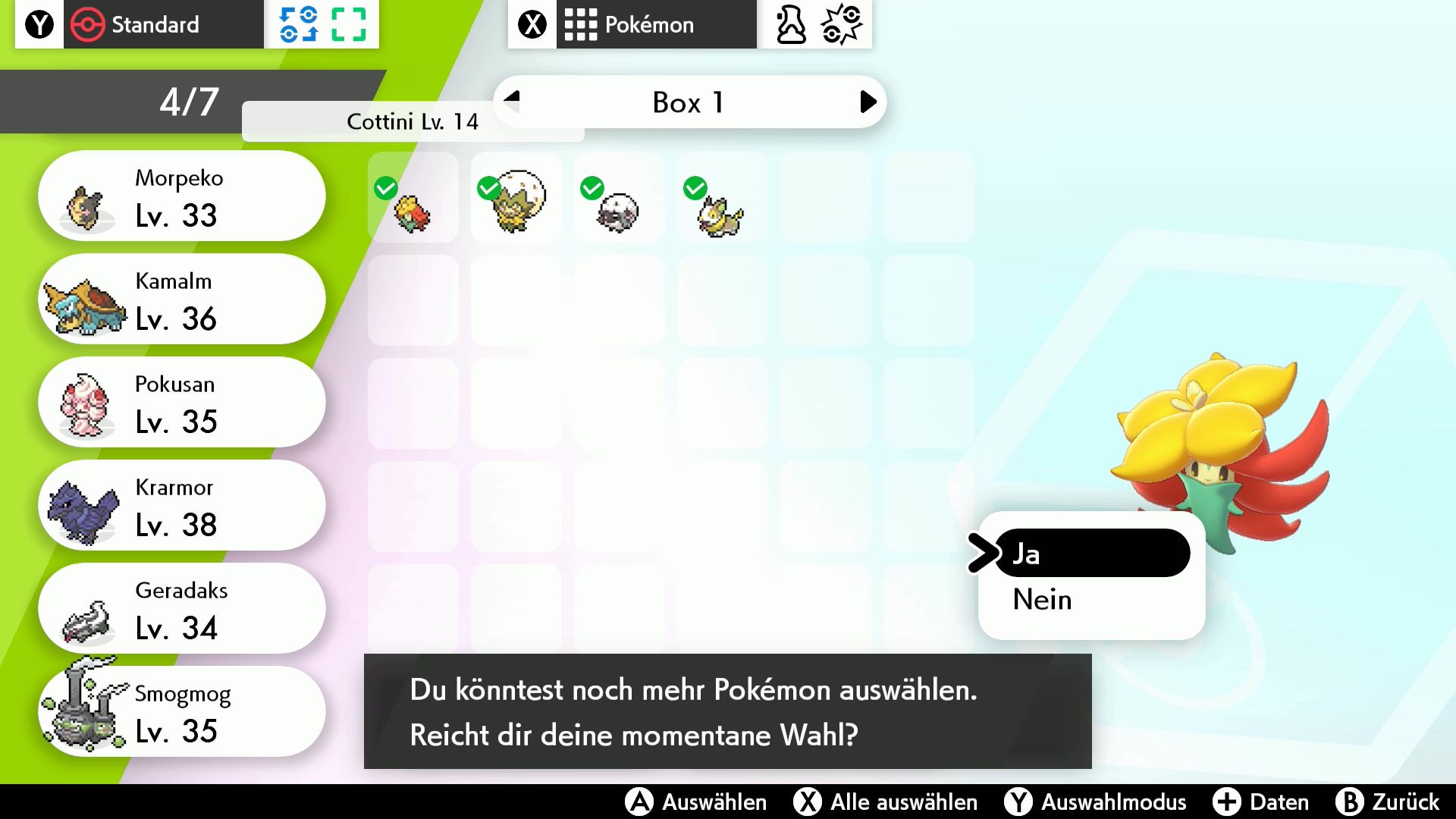 Anschließend dürft ihr noch wählen, für wie lange ihr diese Pokémon für den gewählten Job entsenden wollt: