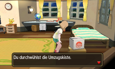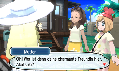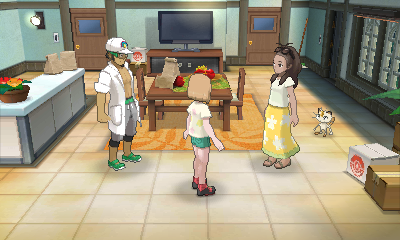 Dort angekommen könnt ihr eurer Mutter euer Starterpokémon vorstellen und geht anschließend schlafen. Am nächsten Tag ist eure Mutter noch immer mit dem Umzug beschäftigt. Auch dieses Mal wieder klingelt es an der Tür. Geht also dorthin, um die Tür zu öffnen und Professor Kukui hinein zu lassen, der euch abholt, um zum Fest in Lili’i zu gehen.