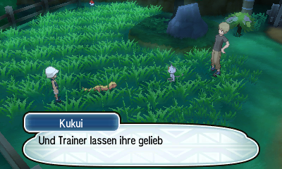 Aufwecker aufhebt. Geht weiter durch die große Grasfläche in Richtung des Hauses vor dem Lilly steht. Nähert ihr euch dem Eingang hört ihr bereits von draußen, wie Professor Kukui mit seinem Wuffels trainiert. Geht in das Haus hinein und begrüßt Kukui, der bereits auf euch gewartet hat.