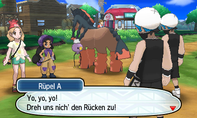 Hapu bedankt sich nach eurem Sieg schließlich für die Hilfe die beiden Rüpel in die Flucht zu schlagen und reitet auf ihrem Pokémon davon. Geht weiter die Route entlang nach links und zerstört die Felsen mit dem Tauross-Rammbock. Dahinter findet ihr das Item