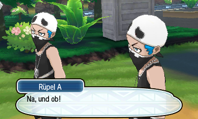 Superschutz, sowie die TM88 Schlafrede auf der unteren Seite der kleinen Fläche. Wieder zurück auf Route 6 könnt ihr weiter dem Weg folgen, bis ihr auf Hapu trefft, die von zwei Team Skull Rüpeln aufgehalten wird. Sie bittet euch einen der beiden Rüpel zu besiegen, während sie den anderen übernimmt. Helft ihr gegen ihre Gegner zu kämpfen und besiegt den Team Skull Rüpel, der euch bereits auf Mele-Mele über den Weg gelaufen ist.