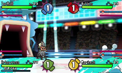 Folgt ihm in den Dome hinein und geht in Richtung der Rezeption. Kurz bevor ihr euch dort anmelden könnt, werdet ihr von Mask Royale begrüßt, der eine komische Ähnlichkeit mit Professor Kukui aufweist. Er lädt euch ein bei einem Battle Royale teilzunehmen und nutzt dazu die Anwesenheit von Tali und Gladio, um diese ebenfalls einzuladen. Ihr könnt euch kaum dagegen währen gegen die drei anzutreten. Kämpft also im Battle Royale gegen dir drei.