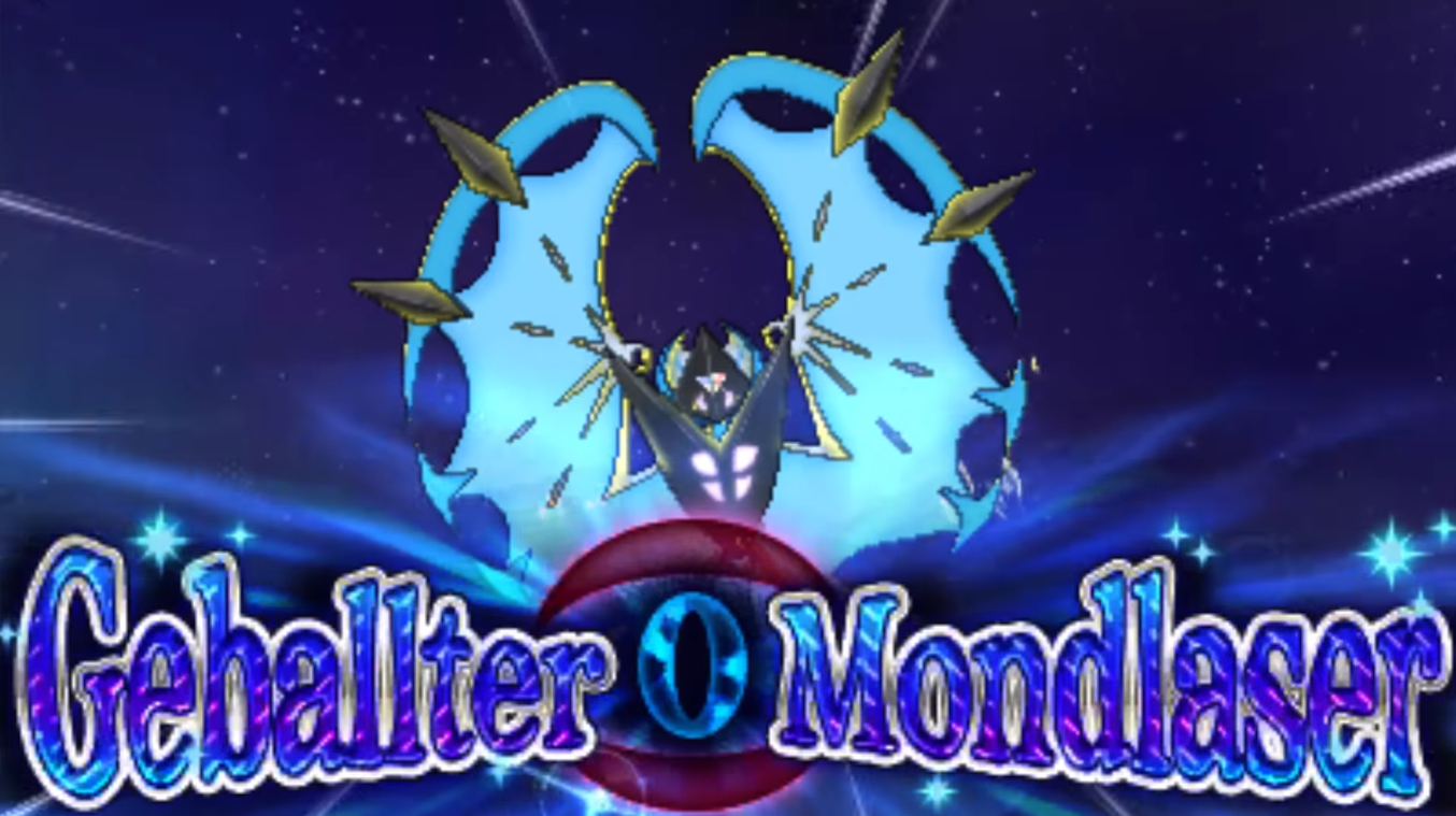 Durch den am 12.10. erschienenen Trailer zu Pokémon Ultrasonne und Ultramond wurde die Attacke „Geballter Mondlaser“ für Lunala und die Morgenschwingen-Form von Necrozma vorgestellt. Grundlage für die Z-Attacke ist die Attacke Schattenstrahl, welche mit dem Z-Stein Lunalium Z von Lunala oder Necrozma (Morgenschwingen) eingesetzt werden kann. Sie fügt Schaden hinzu.