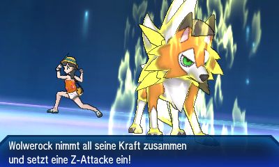 Durch die CoroCoro-Ausgabe im September 2017 wurde eine neue Z-Attacke „Fataler Steinregen“ für alle Formen von Wolwerock vorgestellt. Grundlage für die Z-Attacke ist die Attacke Steinkante, welche mit dem Z-Stein Wolwerockium Z von Wolwerock eingesetzt werden kann. Sie fügt Schaden hinzu und löst gleichzeitig verschiedene Feldeffekte auf.