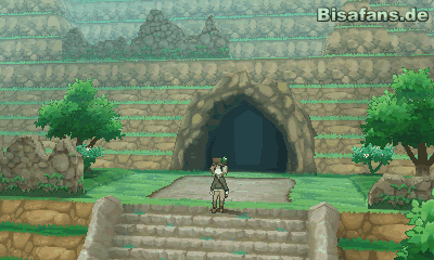 In diesem Abschnitt musst du zunächst über Steine springen. Springe zunächst nach oben links und gehe dann den Weg entlang zu dem Stein, den man zertrümmern kann. Geh dann die Treppe nach unten und dann zu dem Stein am Ende des langen schmalen Ganges, um einen Hyperball zu finden. Danach kannst du wieder zurückgehen und die rechte Treppe hinauf laufen, über einen Stein springen und schließlich den großen Stein mit Stärke in das Loch schieben. Geh danach zunächst dort nach oben, wo der Schwarzgurt immer auf und ab läuft. Am Ende des Weges findest du dort ein Carbon, sowie – mit dem Itemradar – einen Glattbrocken. Geh danach über den verschobenen Felsen nach oben. Stehst du kurz vor der Brücke, kannst du nach oben und dann nach links gehen, um durch einen kleinen Gang zwischen den Felsen zu laufen. Am Ende findest du ein Sonderbonbon. Begib dich nun über die Brücke in der Höhle und folge dem Weg bis du dich wieder außerhalb des Areals befindest.