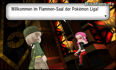 Du kannst dir aussuchen, in welcher Reihenfolge du die Top Vier der Liga besiegst. Ich gehe in diesem Fall im Uhrzeigersinn vor und besiege die Gegner nacheinander. Kauf dir so viele Beleber und Hypertränke, wie es nur geht; sie sind wirklich sehr hilfreich und ersetzen den Gang zum Pokémon-Center. Zwischen den einzelnen Top Vier Mitgliedern kannst du dich nämlich nicht heilen lassen. Dafür sind Heilitems sehr hilfreich.