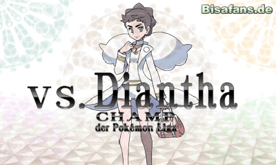 Der Champ der Top Vier ist schon etwas schwerer zu besiegen. Du must dieses Mal darauf achten alle Schwächen der eingewechselten Pokémon auszuspielen. Im Gegensatz zu den anderen gegnern hat Diantha nämlich keine Schwäche, die alle ihre Pokémon sehr effektiv trifft. Achte darauf, dass sie deine Pokémon nicht zu schnell besiegt und falls doch mal ein großes Loch in dein Team gerissen wird, dann nutze Beleber oder Hypertränke um den Schaden zu reduzuieren! Besonders schwer kann sich da Guardevoir herausstellen, welches die Mega-Entwicklung beherrscht. Achte gut darauf, dass dieses dich nicht zu oft trifft, du aber umso öfter gute Attacken nutzt!