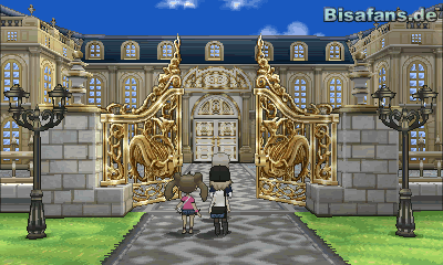Auf dem Weg zum Magnum-Opus-Palast findest du dich auf einer großen Allee wieder. Auch hier warten einige Trainerkämpfe auf dich, die du gewinnen musst, um dein Ziel zu erreichen. Folge dem Weg geradeaus und betrete den Palast.