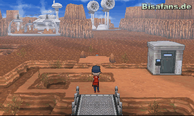 Gehst du auf den roten Untergrund, findest du bald einen Nestball auf dem Boden. Er befindet sich in der Nähe links des Endes des Pfades. Benutz am besten das Itemradar, um den Ball schnell zu finden. Geh zunächst nach rechts und springe mit deinen Rollerskates über die Anhöhe. Vergiss nicht genügend Anlauf zu nehmen! Rechts oben in der Ecke findest du das Item Glattbrocken. Hältst du dich nun noch immer rechts aber gehst nach unten triffst du bald auf das Item X-Treffer hinter einem Stein. Setze von dort aus den Itemradar ein, um das Item Megablock zu finden. Gehst du weiter nach rechts unten ändert sich die Perspektive nachdem du eine kleine Brücke überquert hast. Spring zum Pokéball herüber um die Feuertafel dort zu erhalten. Geh nun wieder zurück zum Anfang und halte dich dort links. Folge dem linken Rand bis du zu langen Schienen kommst. Unterhalb der Schienen befindet sich ein Stein, der einen Heißbrocken versteckt. Klicke diesen Stein an, um das Item zu erhalten. Springe auf sie und gehe dann nach unten, um einen Sonnenstein zu erhalten. Zerstrümmere danach einen Fels um das Item Feuerheiler zu bekommen. Spring noch einmal auf die Schienen und klicke auf den Stein. Dort findest du ein AP-Plus. Zertrümmre auch den Stein links von dir und gehe den Abhang hinunter. Klick den ersten linken Stein an, um einen Hypertrank zu erhalten. Folge dem Weg bis du schließlich die TM57 Ladestrahl bekommst. Hast du dies getan kannst du dich nun Richtung Kraftwerk (links) begeben. Kurz vor der Brücke auf der ein Team Flare Mitglied steht, findest du einen großen Felsen. Klicke ihn an, um einen Kraftwerkspass zu erhalten.
