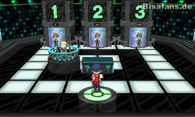 In dieser Arena musst du Fragen beantworten und daraufhin gegen Trainer kämpfen. Glaubst du eine Antwort zu wissen, musst du gegen den Trainer kämpfen, der bei der Zahl steht die du ausgewählt hast. Hast du die Frage richtig beantwortet, darfst du einen Stockwerk höher gehen. Wählst du hingegen den Trainer mit der falschen Antwort, musst du danach gegen einen weiteren Trainer antreten. Solltest du also etwas Training oder Geld brauchen, kann man auch absichtlich eine falsche Antwort wählen.