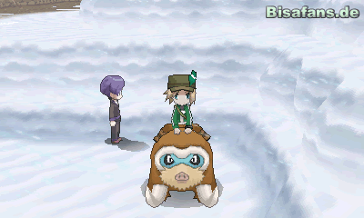 Folge dem Weg, bis du auf Mamutel triffst. Dieses scheint sich Sorgen um die Frosthöhle zu machen. Behalte dies im Hinterkopf und geh den Weg weiter Richtung Frosthöhle. Gleich über dem Maler findest du mit Hilfe des Itemradars das Item X-SpezialVer. Auf deinem Weg in Richtung Frosthöhle kannst du zu diesem Zeitpunkt nicht alle Items einsammeln, da dir die Attacke Kaskade fehlt, um Wasserfälle befahren zu können. Komm also zu einem späteren Zeitpunkt noch einmal wieder, um die Route komplett abzuschließen.