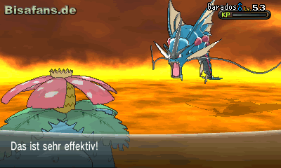 erstmalig ein Mega-Garados, wogegen Bisaflor sehr effektiv ist!