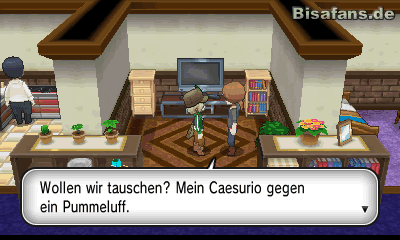 Nach diesem spannenden Kampf kannst du dich nun weiter durch die Stadt begeben. Gehe nun in das linke Haus von dir und sprich das Mädchen an. Sie stellt dir zwei Fragen über deinen Starter und schenkt dir – je nachdem, ob du Froxy, Fynx oder Igamaro ausgewählt hast – ein Tafelwasser, eine Holzkohle oder das Item Wundersaat. Solltest du die Fragen nicht auf Anhieb beantworten können, kannst du in unserem Pokédex nach den nötigen Informationen suchen!