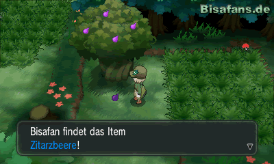 Der Wald macht seinem Namen alle Ehre. Es gibt viele Eingänge in diesem Wald – weshalb es schwer ist den überblick zu behalten. Gehe, nachdem du den Wald betreten hast, zunächst durch den linke Eingang. Du kommst schließlich in eine Sackgasse in der du eine Zitarzbeere finden kannst, sowie das Item Para-Heiler. Hast du diese abgestaubt kannst du durch den Eingang, durch den du gekommen bist, wieder zurückgehen. Geh dann durch den Unteren Weg. Danach kannst du einfach durch das Gras nach unten laufen. Im nächsten Abschnitt findest du gleich dort, wo du heraus kommst, einen Pokéball mit dem Item Wiesentafel in ihm. Hast du dir diesen ergattert gehst du wieder zurück und dann durch den linken Gang. Halte dich dann zunächst unten und gehe durch den linken Gang in die nächste Lichtung. Mit Zerschneider kannst du dir nun einen Weg bahnen und im Rosenfeld das Item Protein finden, sowie einen Wiederball mit Hilfe des Itemradars am unteren linken Rand (Baumstamm). Gehe dann zurück und durch den unteren Ausgang in den nächsten Raum. Dort findest du genau am Fuße des Baumes das Item Gegengift. Gehe danach zurück und nach oben. Im nächsten Raum musst du zunächst nach unten gehen und den Ausgang nach unten betreten. Laufe einmal nach unten durch, bist du dich in einer weiteren Lichtung wieder findest. Diese Abzweigung ist etwas komplizierter: Gehst du links oder rechts ist es Zufall bei welchem Ausgang du heraus kommst. Gehe zunächst nach links. Falls du in einem Raum bist der einen Ausgang links und einen Ausgang unten besitzt (mit deinem Eingang, also 3 Pfade) gehe nach unten. Du solltest dann in einen Raum kommen in dem du etwas weiter oben im Gras einen Pokéball finden kannst. Heb ihn auf und gehe durch den linken Ausgang. Du solltest nun vor einem goldenen Pokéball stehen; darin befindet sich die TM53 Energieball. Gehe anschließend zurück und dann bei der verwirrenden Lichtung mit den zufälligen Gängen nach unten. Du befindest dich nun im Pokémon-Dorf.