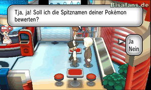 - Der Namenbewerter in Vanitéa ermöglicht das ändern der Namen deiner Pokémon. Beachte, dass getauschte Pokémon nicht den Namen ändern können. Nur der OT (Original Trainer), der im Pokédex-Eintrag des Pokémon eingetragen ist, kann dies tun. Will man ein getauschtes Pokémon umbenennen, muss man es dem original Trainer zurückgeben und dann neu zurücktauschen.
