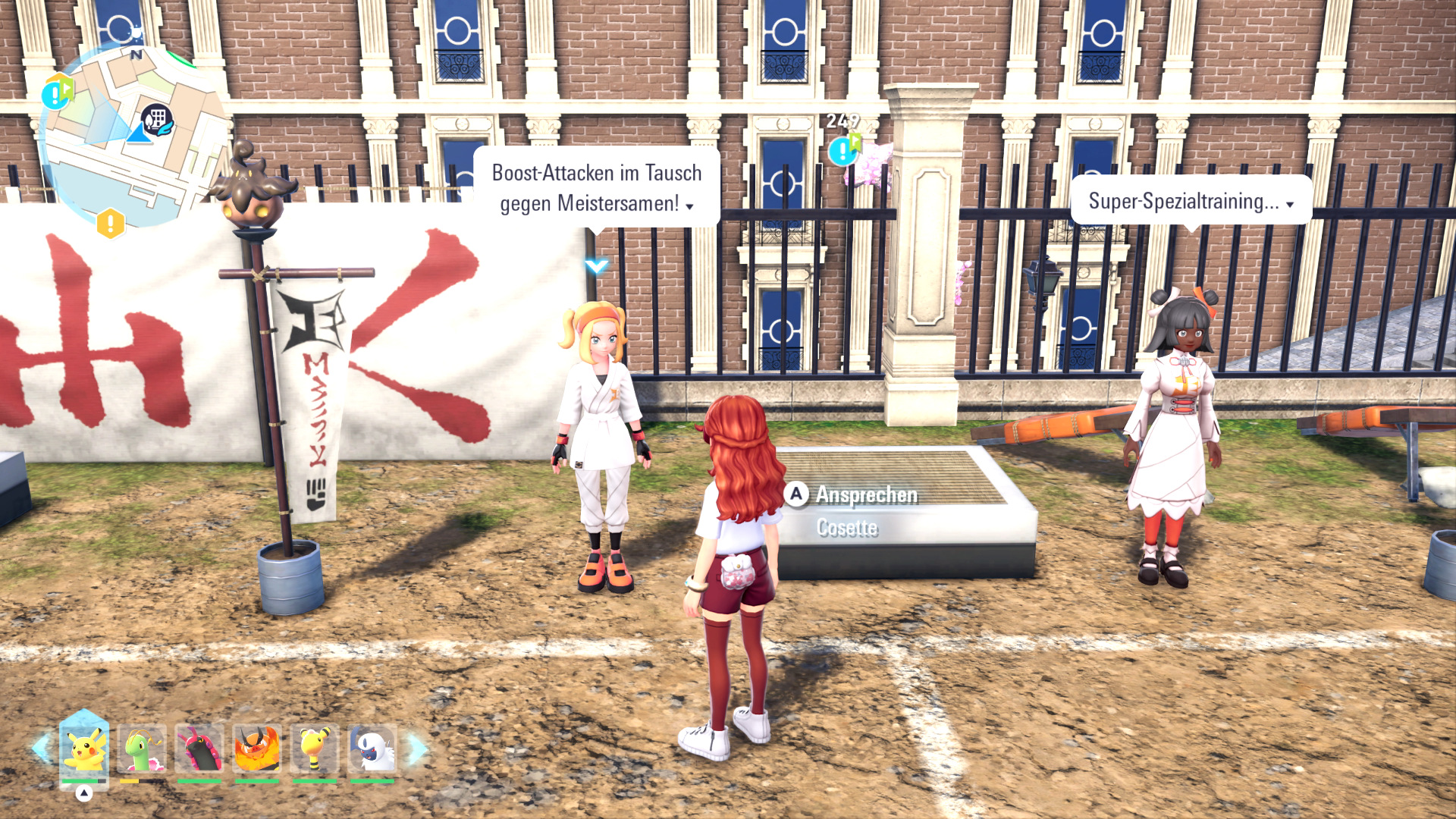 Im Dojo der Gerechten Jaune-Bezirk 2 kann Cosette Pokémon Attacken meistern lassen, sodass diese zu Boost-Attacken werden. Boost-Attacken können durch im Kampf gesammelte Mega-Essenz verstärkt werden. Meistert ein Pokémon eine Boost-Attacke, so kann dies stets eingesetzt werden, wenn genug Essenz vorhanden ist.