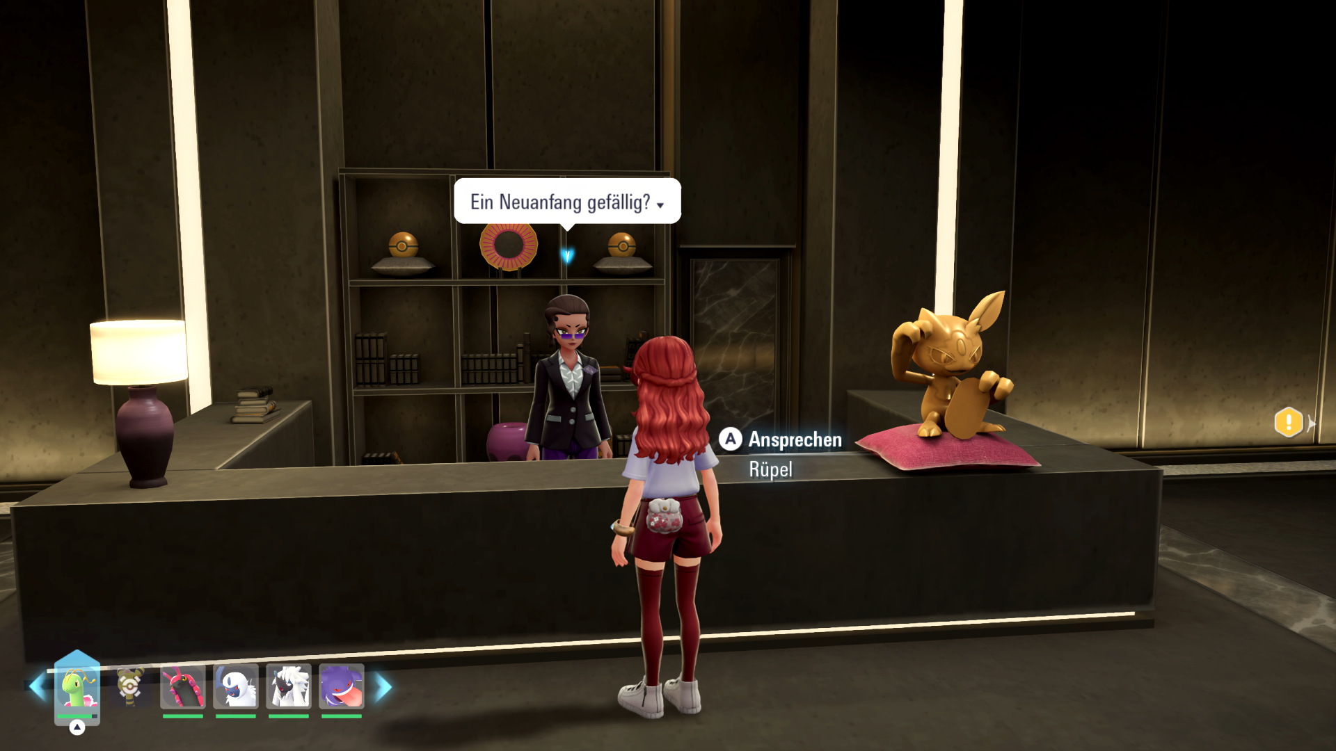 Rezeptionistin, die die EVs eines Pokémon zurücksetzt. Pro Rücksetzung müssen 5
