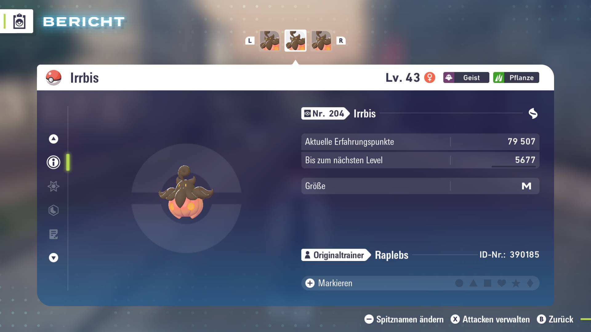 Irrbis und Pumpdjinn können die Formen S, M, L und XL haben. Welche Form das Pokémon in Pokémon-Legenden: Z-A besitzt, kann jedoch nicht im Bericht des Spiels eingesehen werden! Mit etwas Übung und einem guten Blick kann man die unterschiedlichen Formen jedoch in der Wildnis grob unterscheiden.