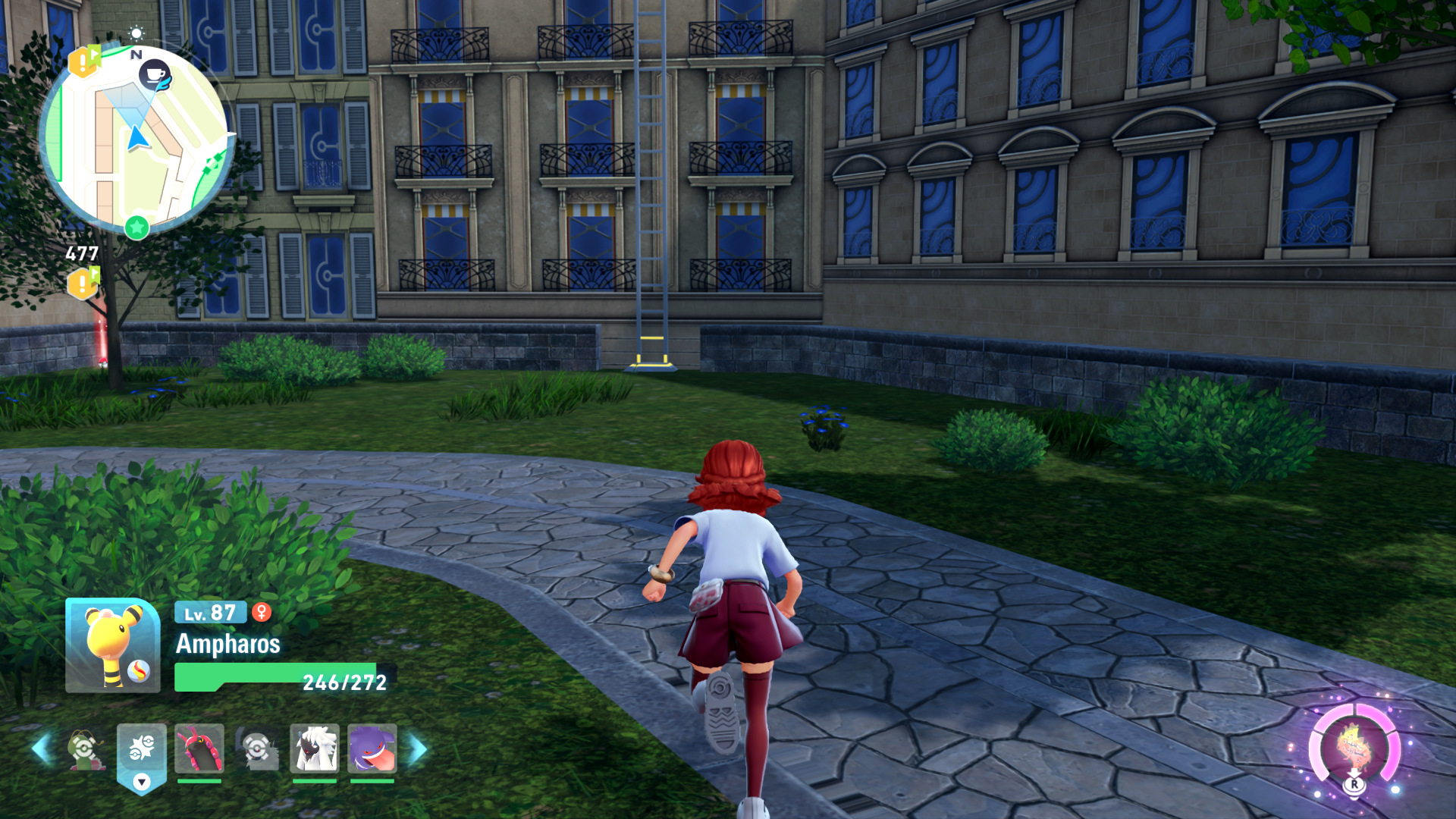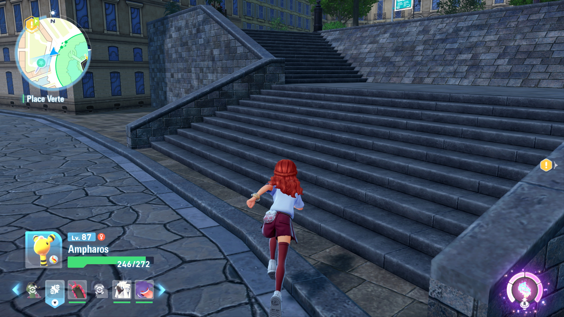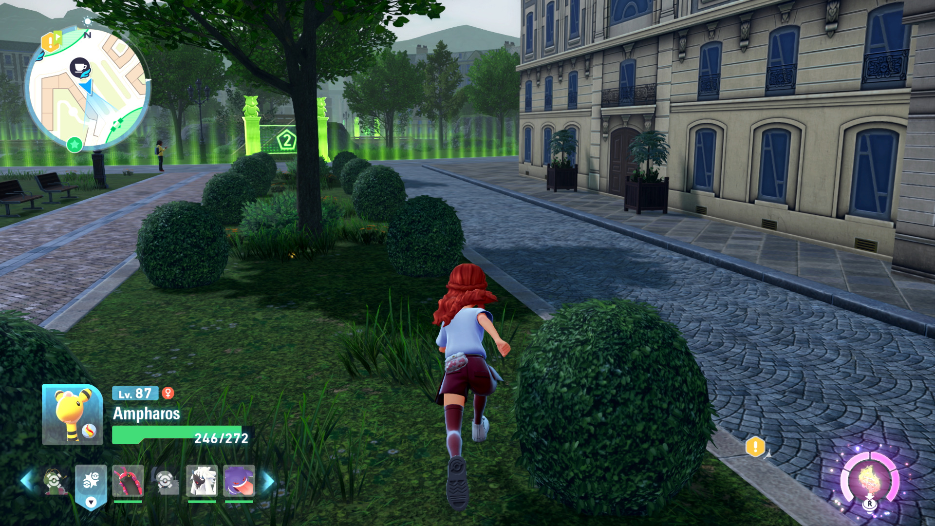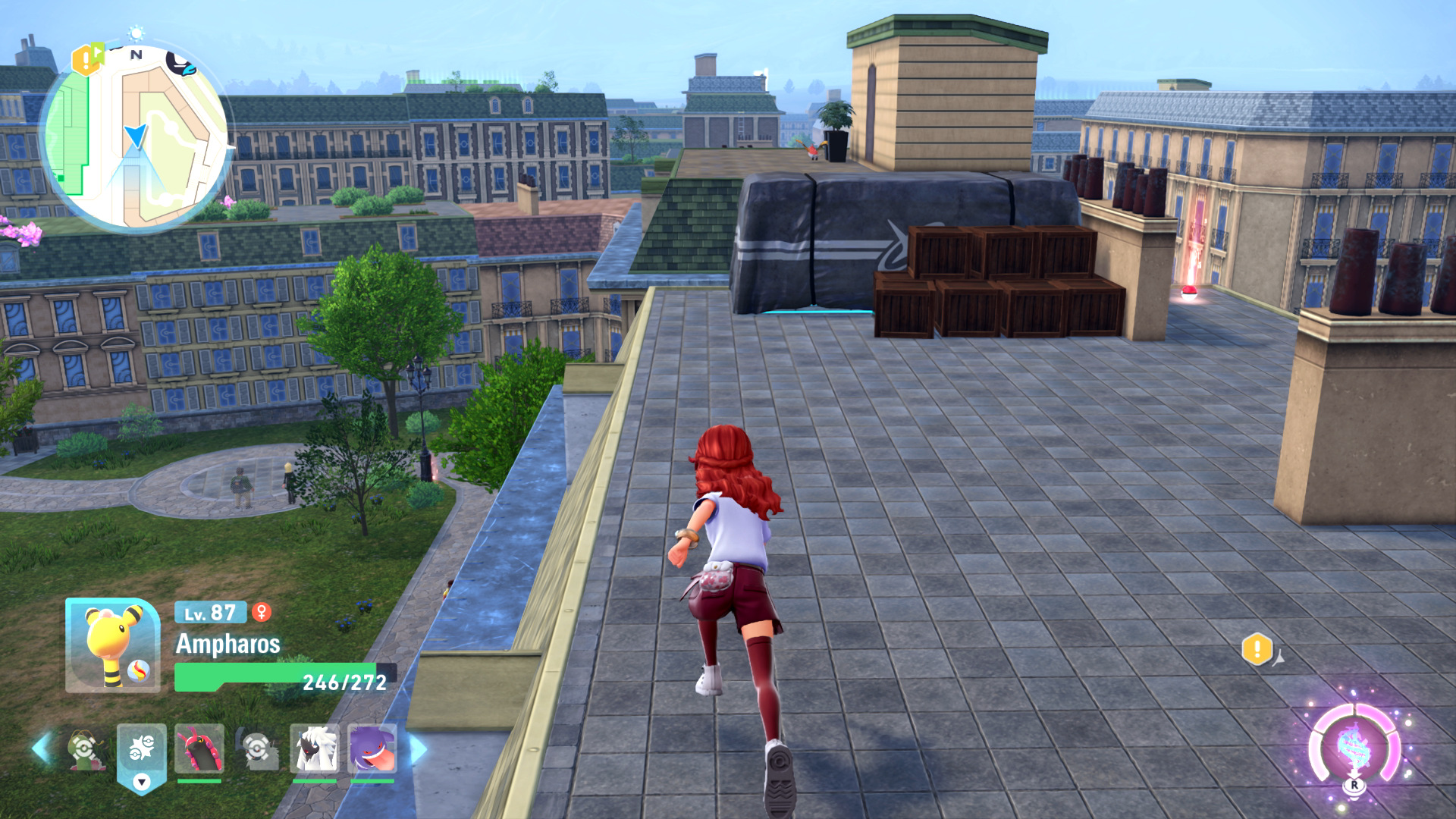 Nehmt den Flugpunkt zu Imbiss Nouveau und lauft nach links in Richtung Wildsektor 2. Geht die Treppen rechts hinauf und nehmt die Leiter auf das Dach. Geht auf dem Dach nach links und folgt dem Weg. Springt vom einen auf das andere Dach und geht weiter den Weg entlang bis ihr auf Larvitar trefft.