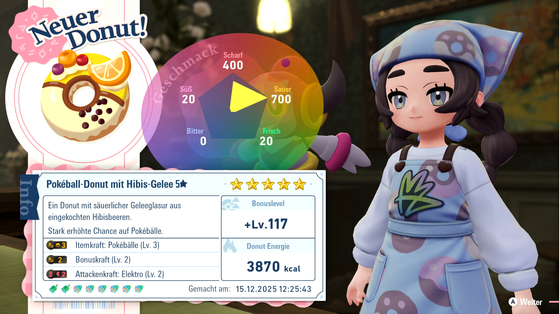 Je weiter in der Geschichte des DLCs gespielt wird, desto mehr Beeren können gleichzeitig für einen Donut benutzt werden. Damit ist es auch einfacher bessere Donuts herzustellen.