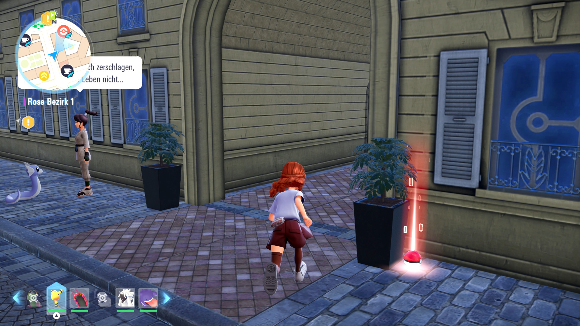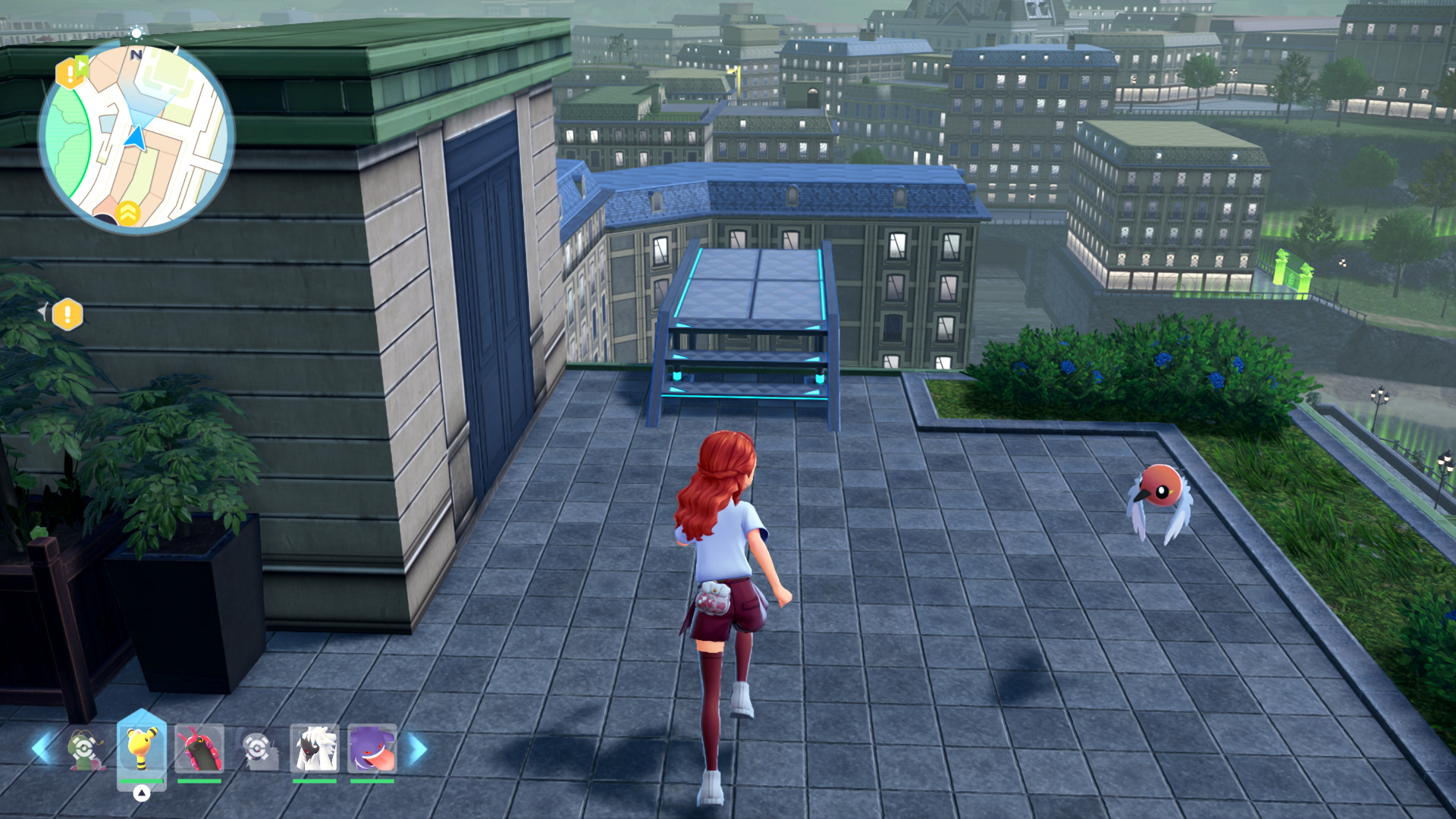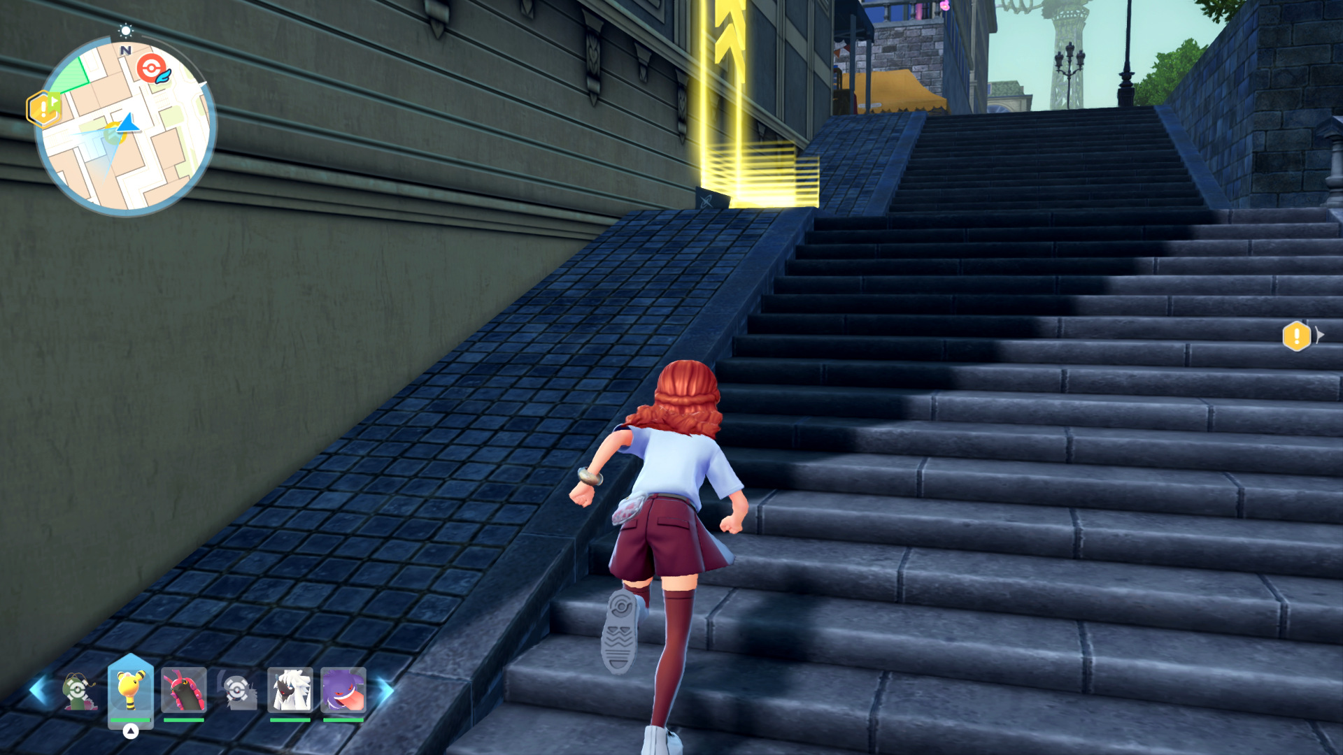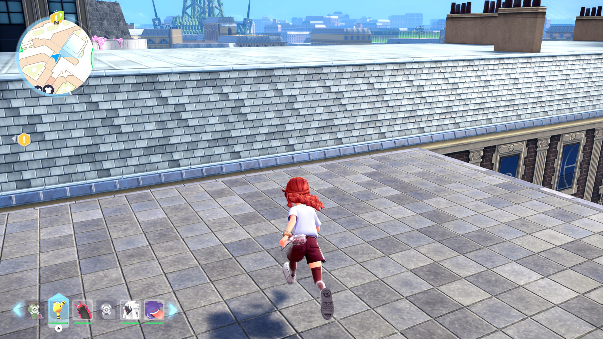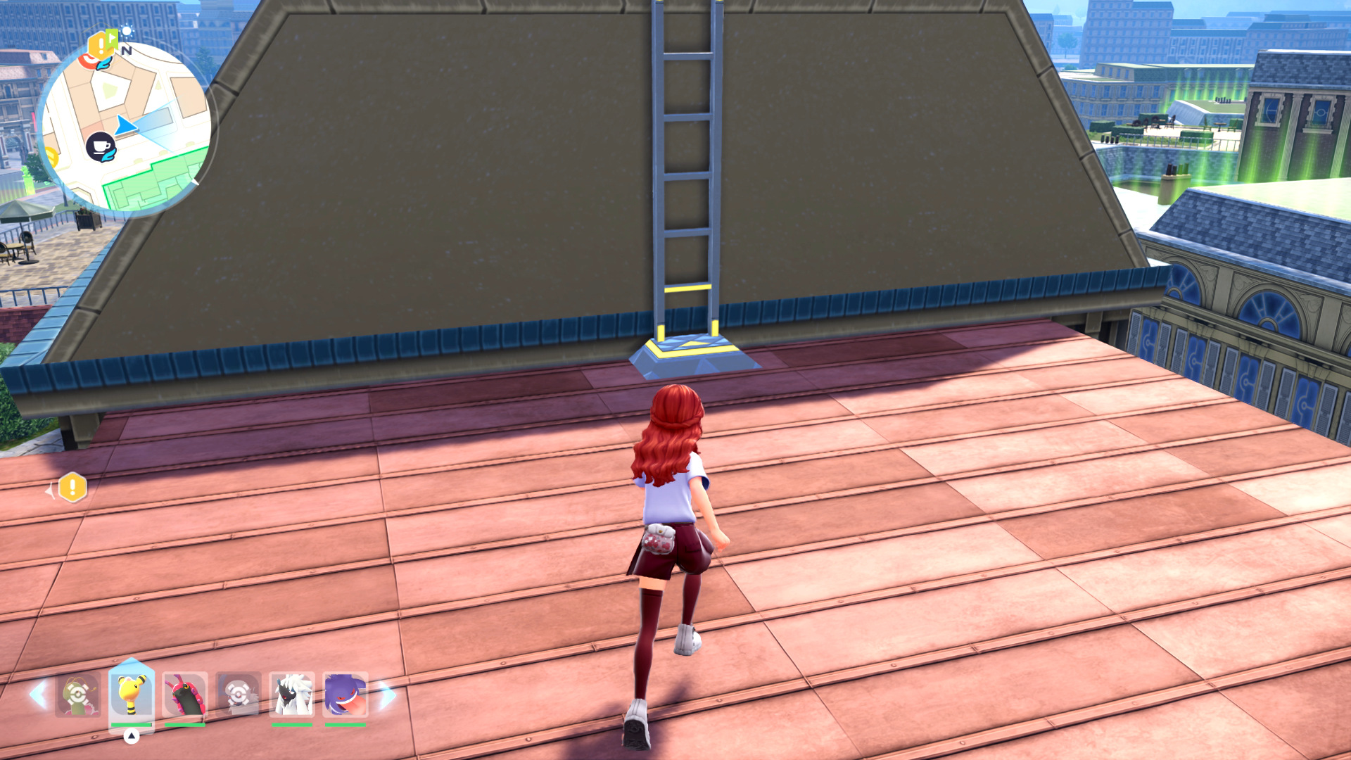 Fliegt zum Pokémon-Center (Jaune) und lauft die Treppen hinauf. Nehmt den Holo-Lift und springt von dem Dach quer auf ein anderes Dach, welches etwas tiefer gelegen ist. Folgt dem Weg über die Dächer bis ihr zu einem Kokon kommt, das ihr mit einer Attacke zu einem Spinnennetz aufspannend könnt. Greift den Kokon an und lauft auf die andere Seite, wo sich Pii befindet.