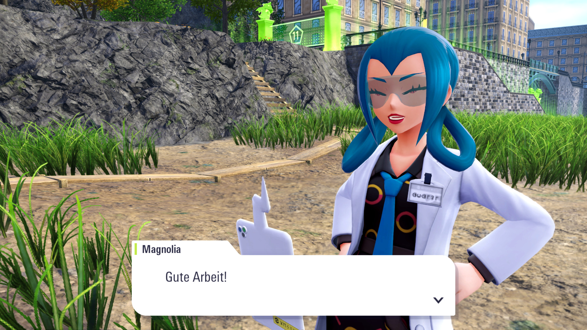 Habt ihr die Forschungsaufgabe erfolgreich abgeschlossen, könnt ihr zu Magnolia zurückkehren und von euren Forschungsergebnissen erzählen. Sie bittet euch nach einem Gespräch darum ein Xerneas zu fangen, welches in Wildsektor 11 auftauchen soll. Begebt euch also zu dem Wildsektor und lauft dort auf die Seite auf der sich Flegmon befinden.