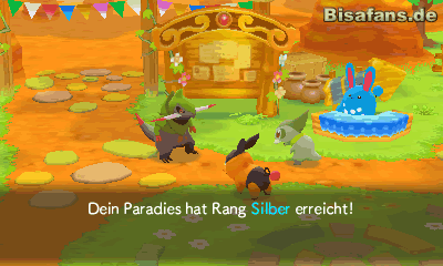| Perfekt | 99.999 | Farbe der Einrichtungen zu Bronze, Kristall, Gold, Silber änderbar, Items: 1x Faunastatue , 1x Lohekanone, 1x Aquahaubitze, 1x Volttackle und 1x Dracometeor, Musikstücke: Ladida - Meloetta und größere Musikauswahl im Paradies (natürlich nur, wenn Meloetta bereits gefunden und das Musik-Paradies gebaut wurde) |