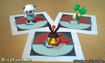 - AR steht für Augmented Reality – erweiterte Realität. Denn die AR-Marker bilden eine Tür zwischen der virtuellen Welt der Pokémon und der wirklichen Welt der Spieler. Um sie zu öffnen, platziert ihr die AR-Marker, wo immer ihr mögt, beispielsweise im Wohnzimmer, im Garten oder in der eigenen Handfläche. Wenn ihr sie dann durch die Kameras des Nintendo 3DS ins Visier nehmt, seht ihr die Pokémon als dreidimensionale Gestalten aus den Codes herausspringen. So könnt ihr ganze Szenen nachstellen, ihre alltägliche Umgebung in eine von Pokémon bevölkerte Welt verwandeln - und euch einen Traum verwirklichen: Ein 3D-Foto, auf dem ihr zusammen mit euren liebsten Pokémon zu sehen seid.