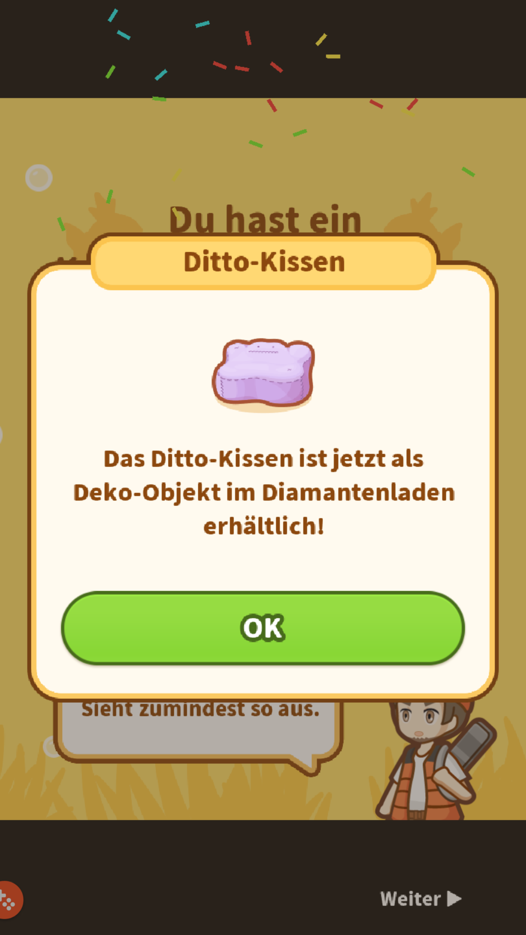 Hiermit ist das 46. Ereignis in eurem Ereignis-Archiv der Stadt erfolgreich freigeschaltet und kann dort eingesehen werden. Ab diesem Zeitpunkt ist es euch außerdem möglich im Shop das Deko-Objekt Ditto-Kissen für 550