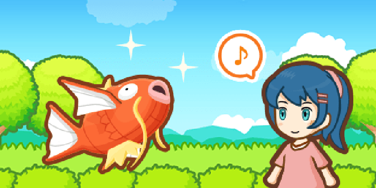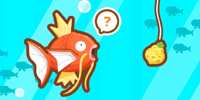 Ihr findet einen Köder an einer Angel. Ihr habt die Wahl, ob Karpador an diesen anbeißen soll, um die Beere zu essen, oder es zu lassen. Ignoriert ihr die Angel, erhält euer Karpador KP. Lasst ihr Karpador die Beere essen, habt ihr die Chance auf mehr KP. Mit Pech kann es jedoch auch passieren, dass die Angel eingezogen wird, was dazu führt, dass euer Karpador KP verliert .