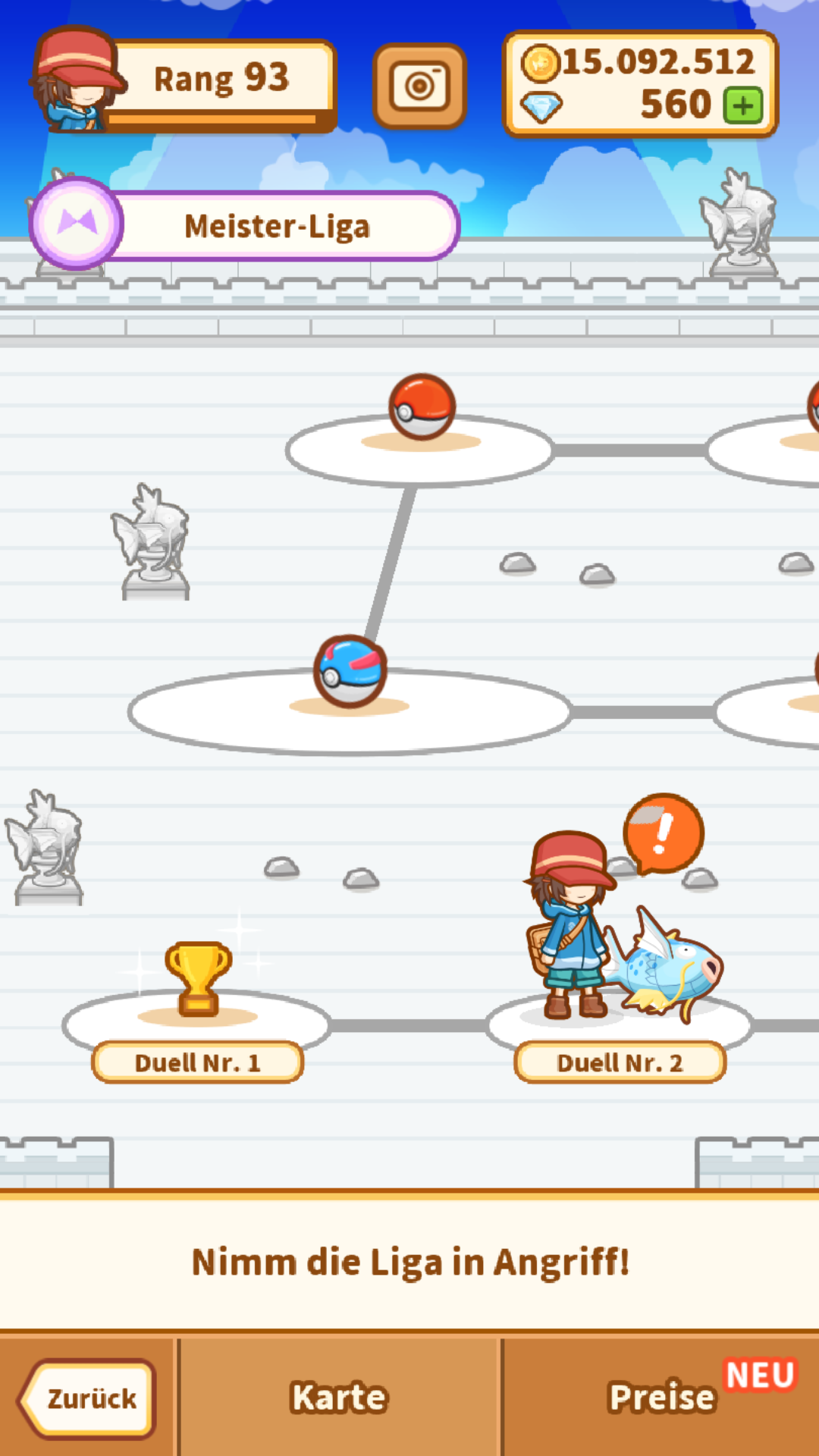Die Meister-Liga ist die zehnte Liga in Karpador Jump und besitzt 15 Gegner. Nach jedem Duell erhaltet ihr 468468 bis 930872 Erfahrungssterne.