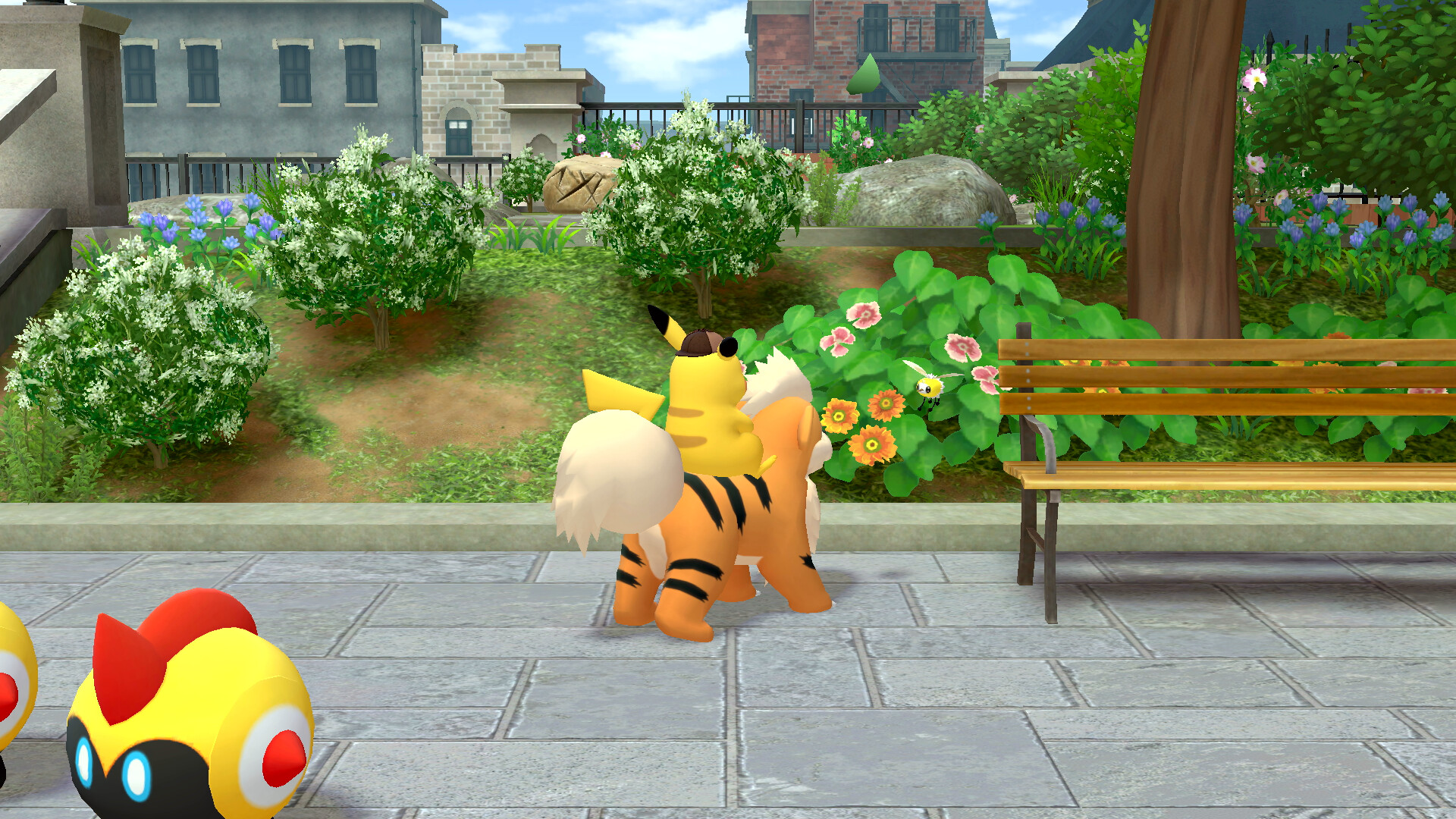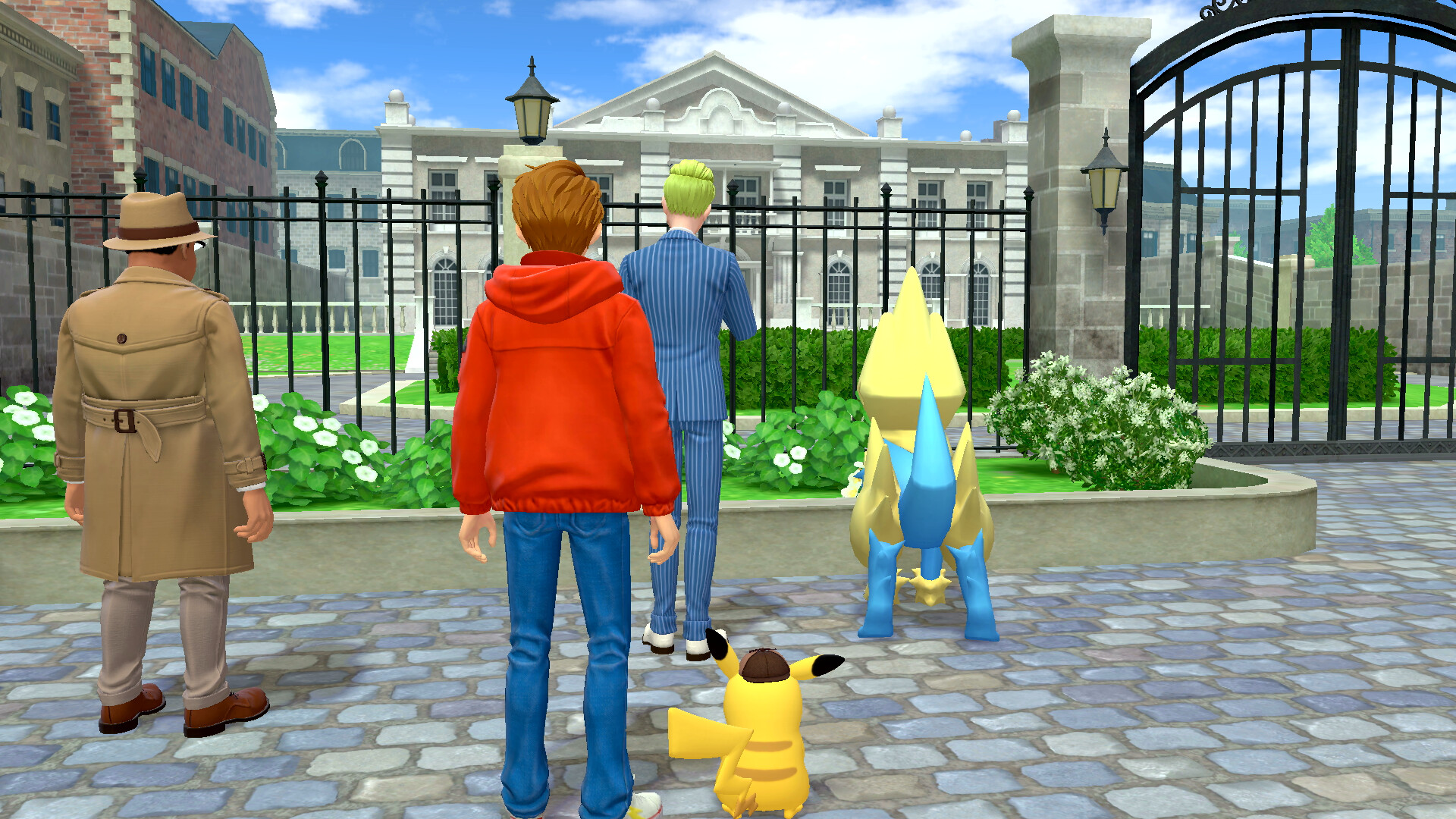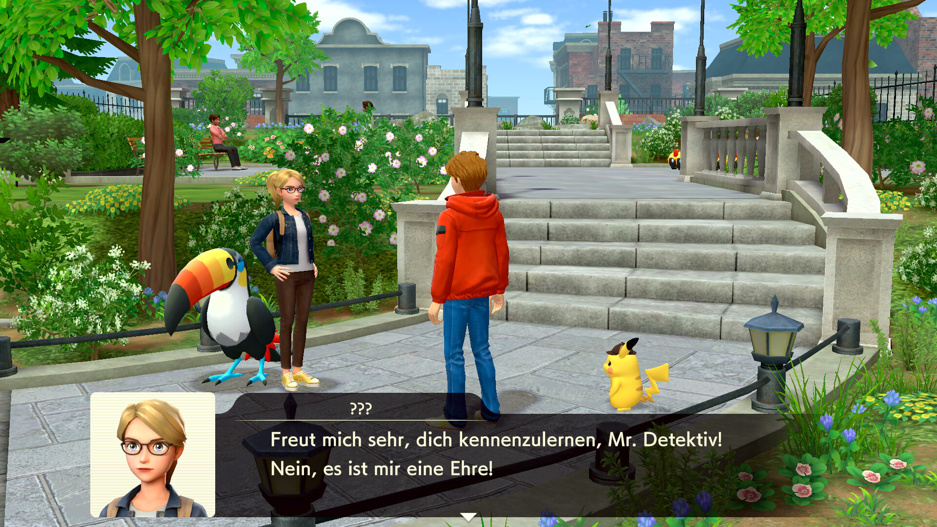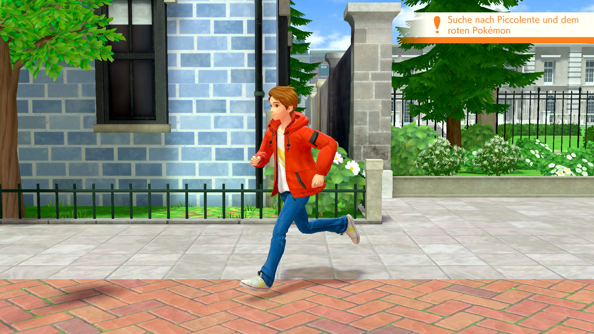 Redet nun zunächst mit den Elfun rechts vom Eingang zu dem Anwesen, um weitere Hinweise einzusammeln. Sie sprechen von einem Gladiantri, das als ein rotes Pokémon erkannt werden könnte. Ihr seid nach diesem Gespräch also auf der Suche nach Piccolente und Gladiantri - und dem Yorkleff der Frau.