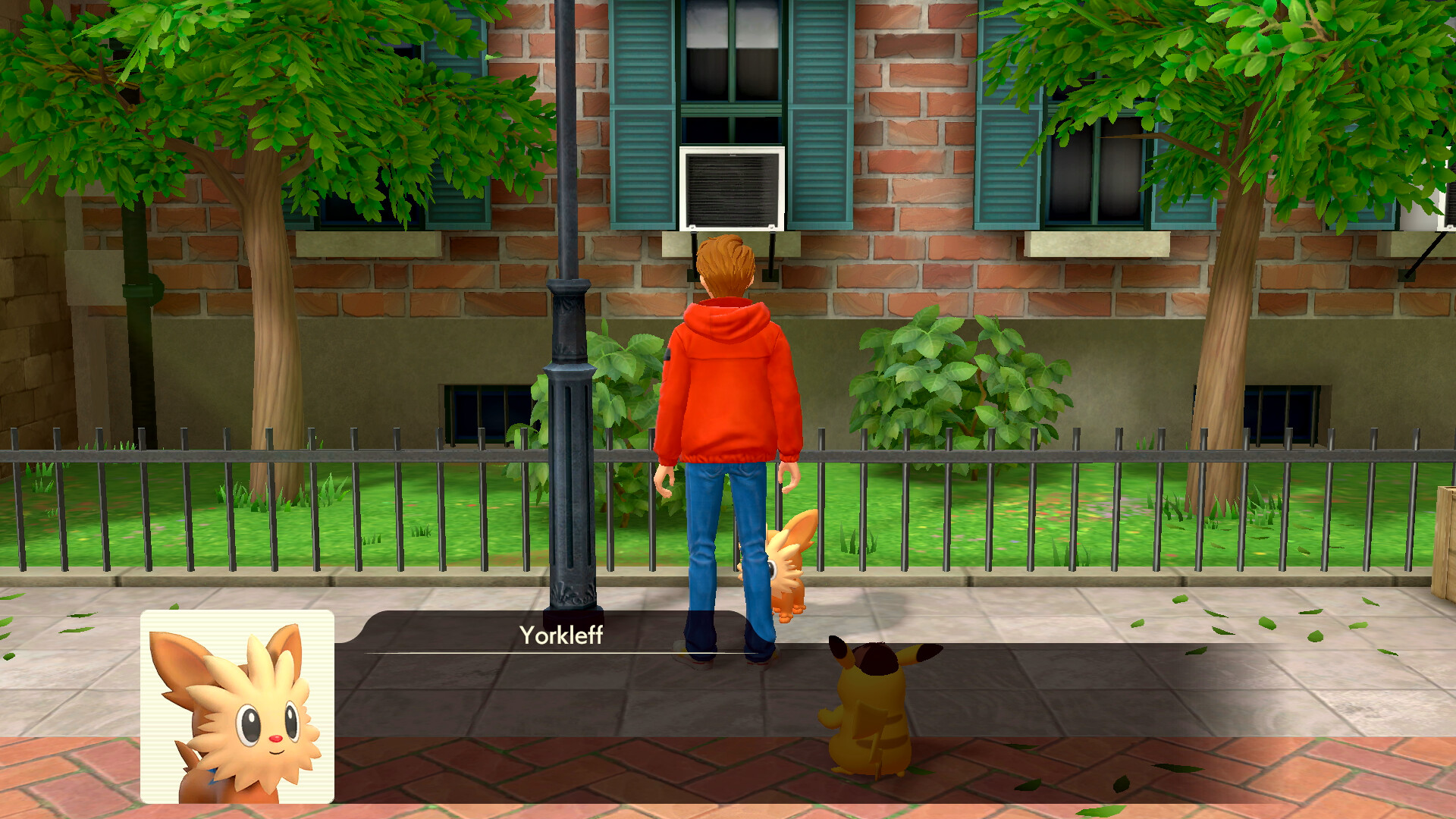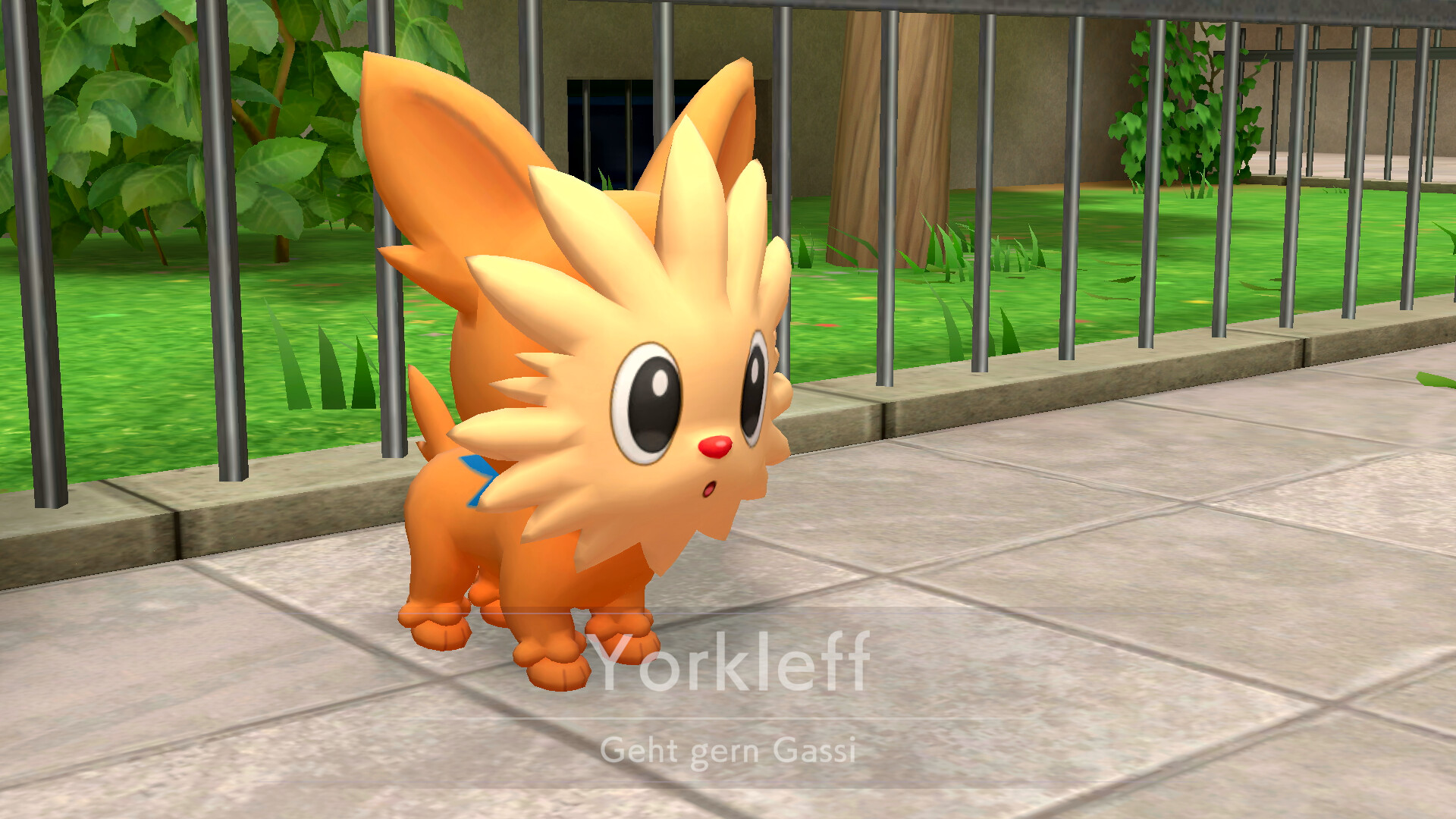 Pikachu wird euch anschließend vorschlagen zurück zur Residenz zu gehen, doch noch habt ihr nicht die ganze Stadt erkundet. Geht deshalb zunächst zur großen Grünfläche zurück und geht zu dem Unratütox, das oben rechts vor der Seitengasse steht. Es verschwindet schließlich in diese. Lauft dem Pokémon nach in die Seitengasse und folgt dem Weg. Ihr trefft schließlich auf das vermisste Yorkleff, das unter einer Laterne steht. Sprecht das Pokémon an und schließt so die "Finde das vermisste Yorkleff!" Nebenaufgabe ab.