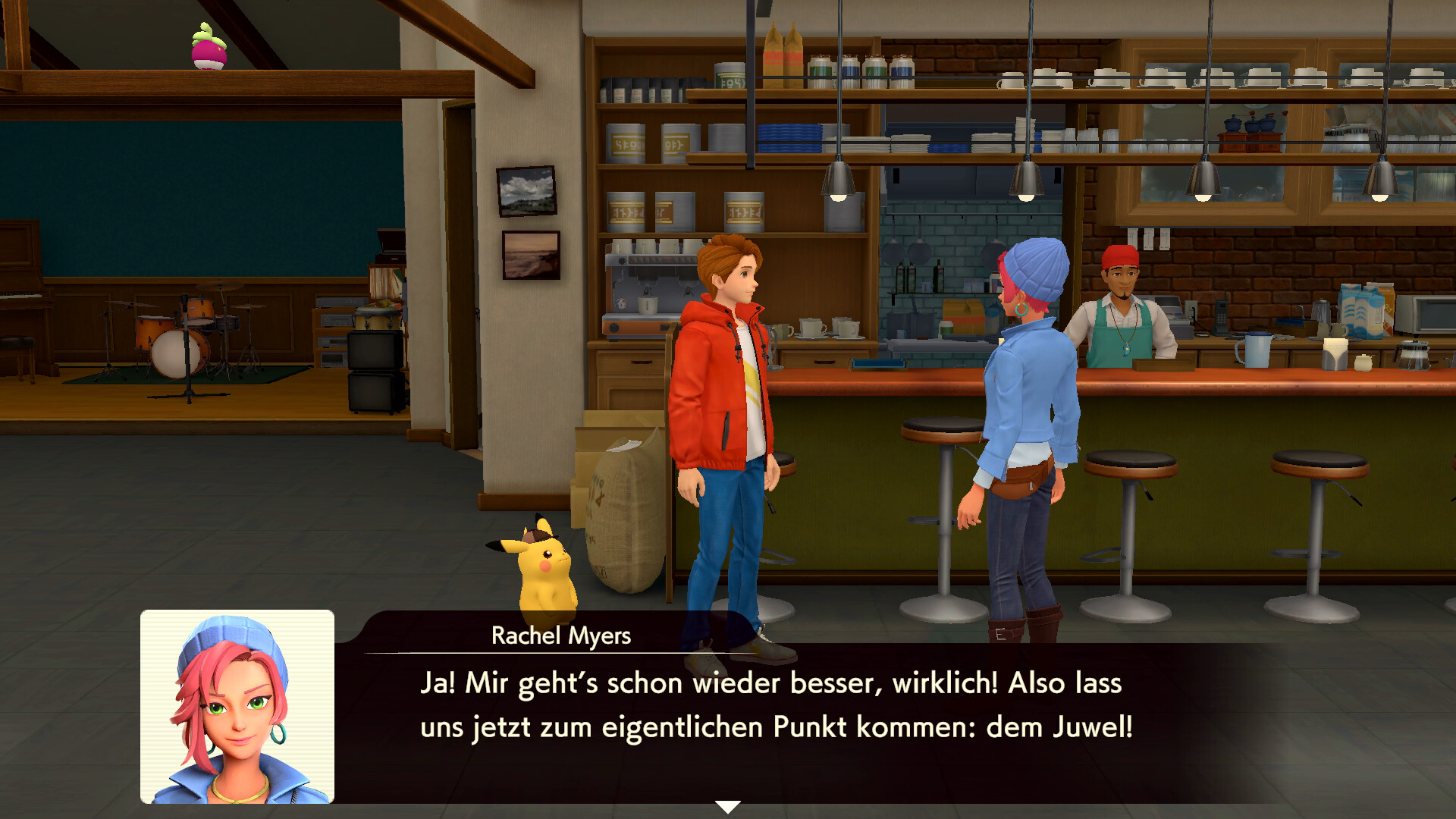 Mit neuer Energie erwacht ihr am nächsten Morgen und könnt euch so direkt zum Hi-Hat Café aufmachen, um Rachel zu treffen. vor dem Eingang des Cafés hört ihr eine Unterhaltung zwischen ihr und ihrem Vater. Rachel ist der Meinung, dass Pokémon nicht kontrolliert werden sollten, sondern, dass jene Verbrecher schuld sind, die Pokémon für Verbrechen ausnutzen. Ihr Vater scheint dies jedoch anders zu sehen. Frustriert geht sie zu euch und gemeinsam in das Café.