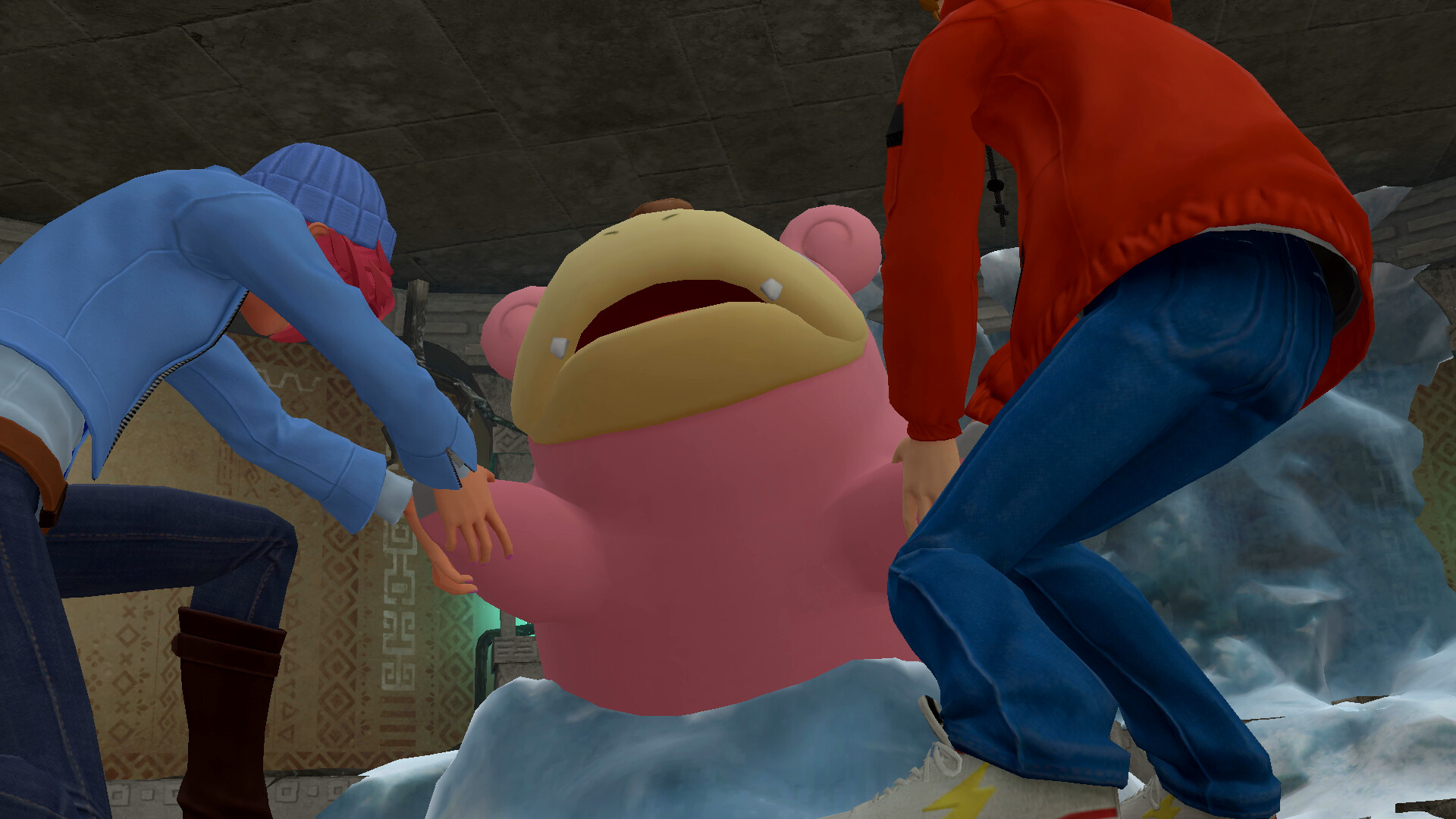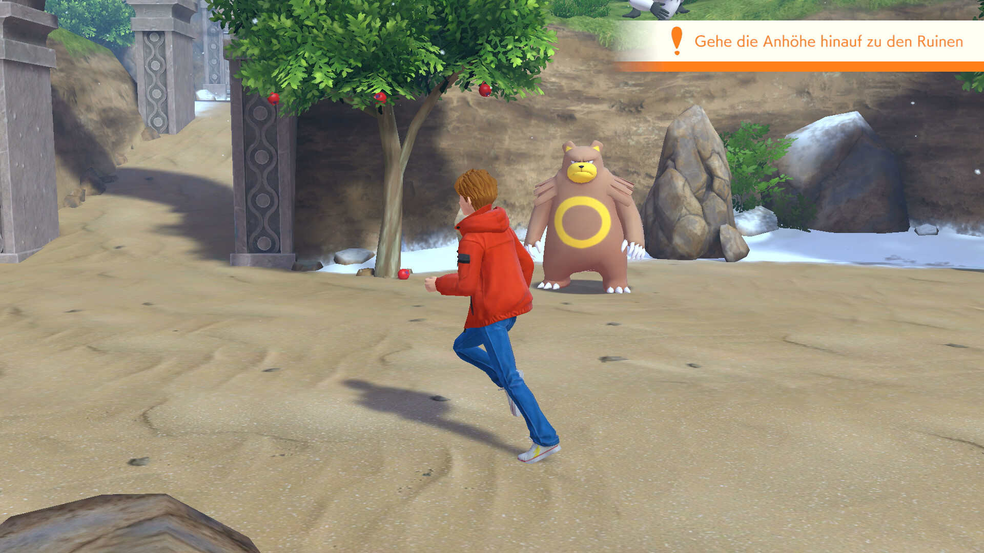 Zum Vorschein kommt ein Raum mit vielen Pokémon. Mit ihnen könnt ihr euch unterhalten und schließlich das vereiste Ursaring mit einem Schlag befreien. Es ist der Freund von Ursaring, das sich vor den Ruinen befindet und geht direkt zu ihm zurück. Folgt ihr dem Pokémon, schließt ihr auch diese Nebenaufgabe erfolgreich ab.